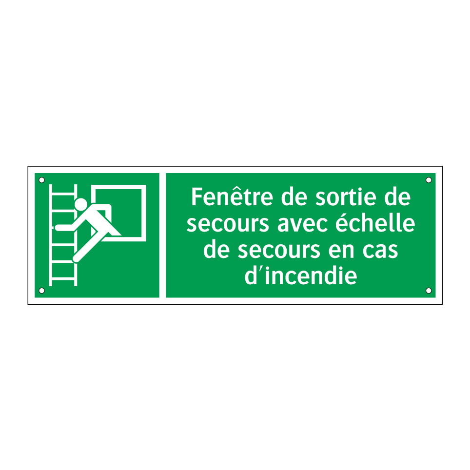 Cette pancarte de sécurité est idéale pour indiquer la présence d'une fenêtre de sortie de secours équipée d'une échelle en cas d'incendie. Elle est conçue pour être placée dans des bâtiments publics, des bureaux ou des immeubles résidentiels afin de guider efficacement les occupants vers une issue de secours. Grâce à son fond vert et son texte blanc, elle est facilement repérable même dans des conditions de faible visibilité. Installez-la près des fenêtres désignées pour assurer une évacuation rapide et sécurisée lors d'une urgence.