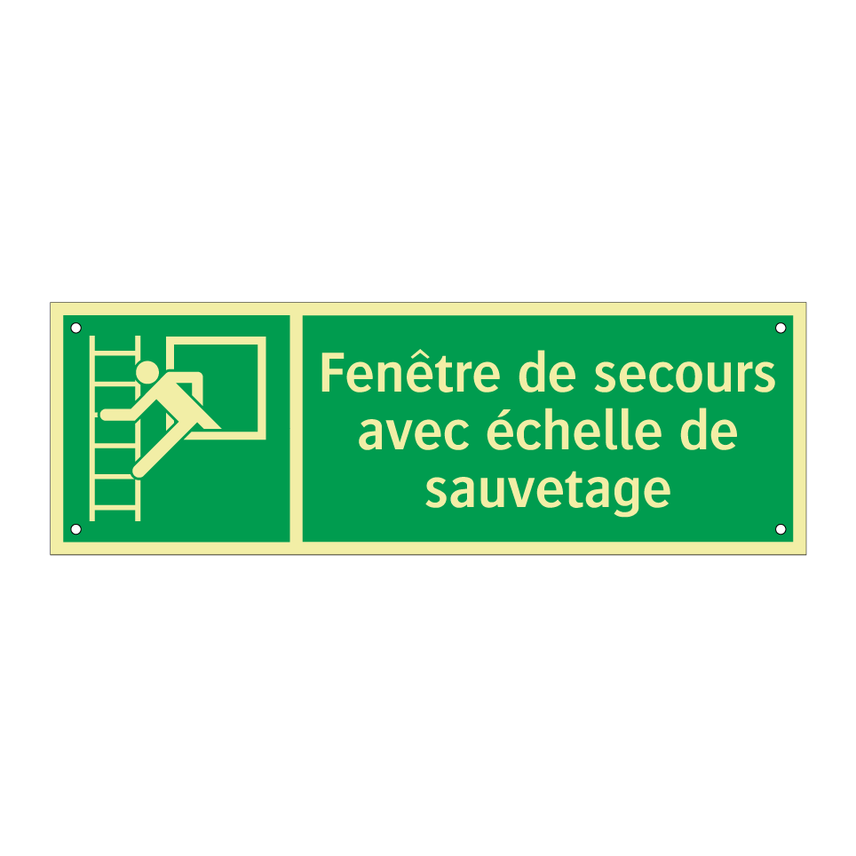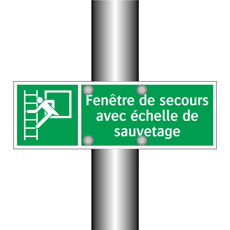 Panneau de secours avec le texte Fenêtre de secours avec échelle de sauvetage et une symbolique claire
