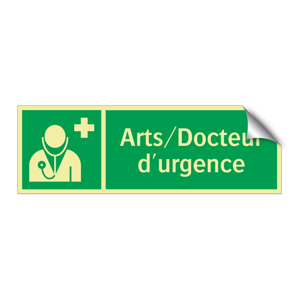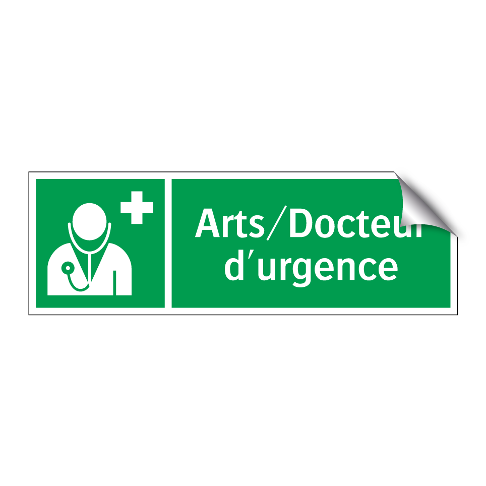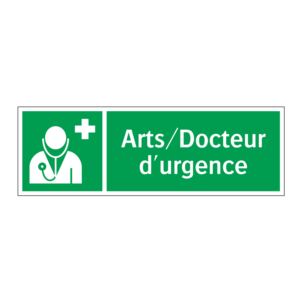 Panneau de secours avec le texte Arts/Docteur d'urgence et une symbolique claire