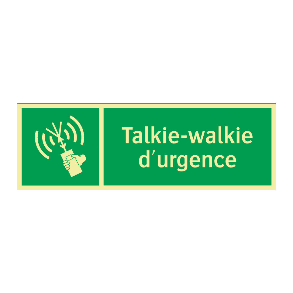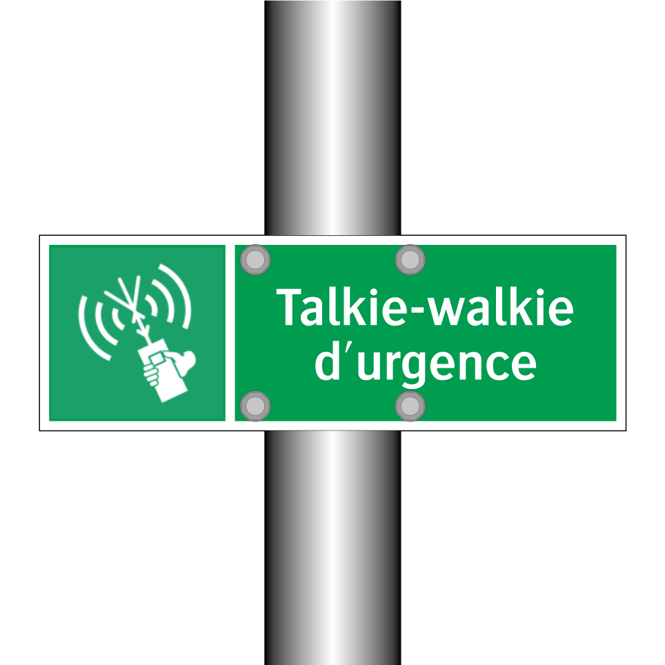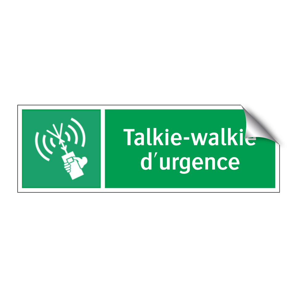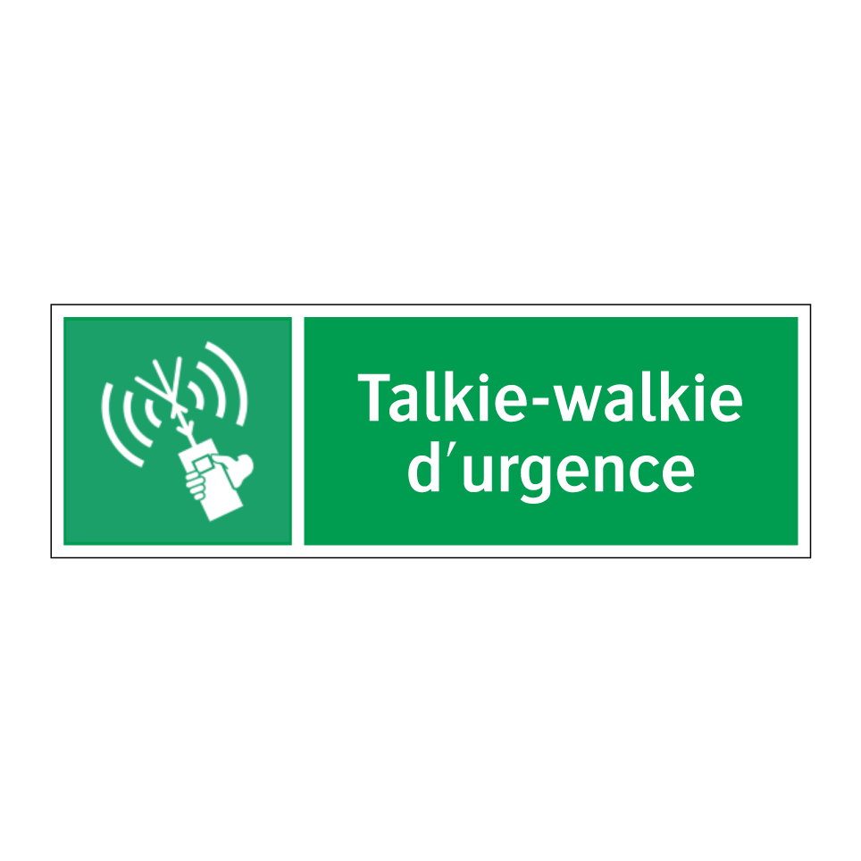 Panneau de secours avec le texte Talkie-walkie d'urgence et une symbolique claire