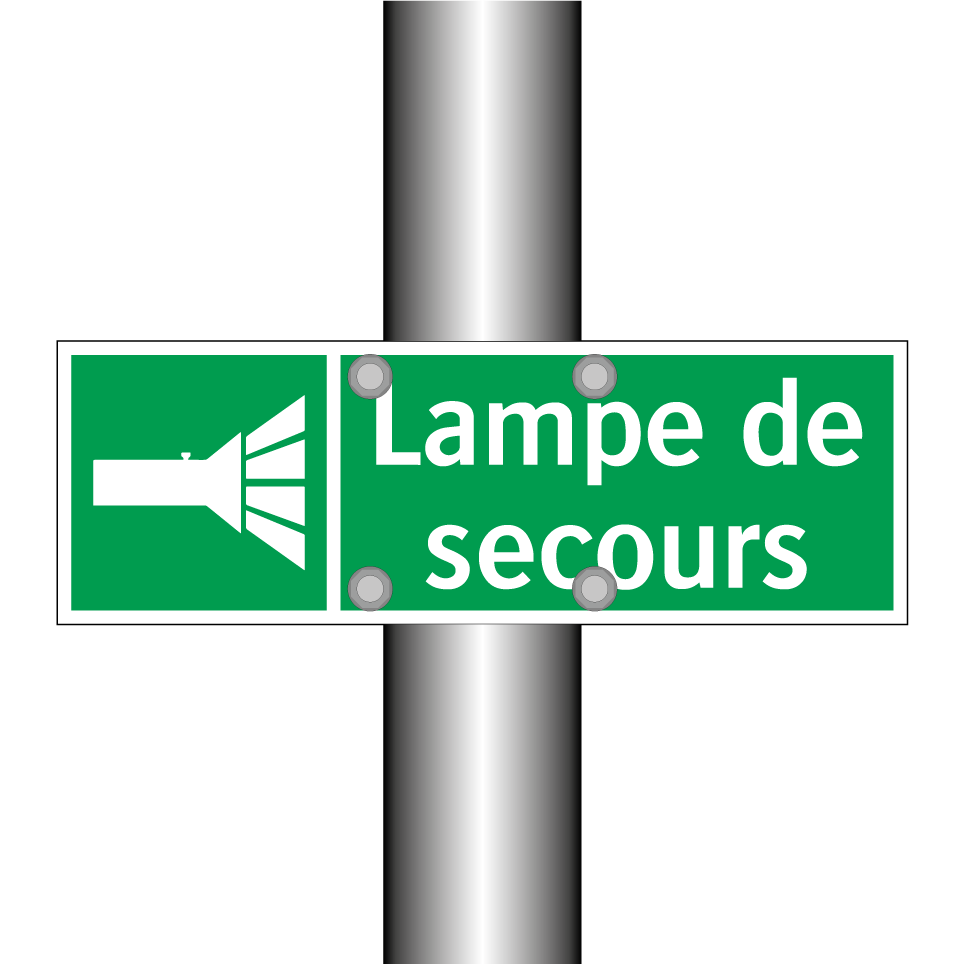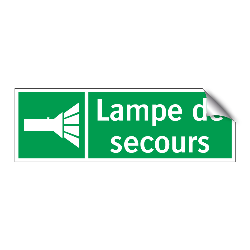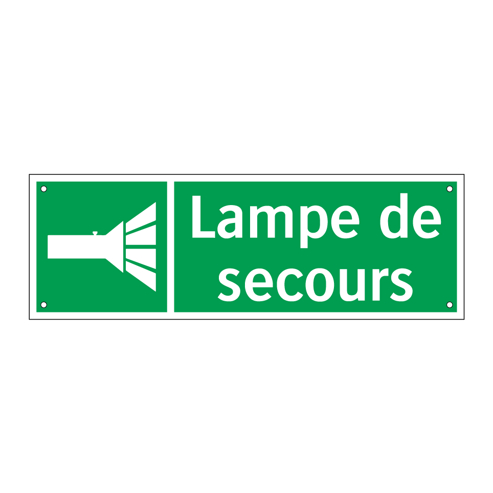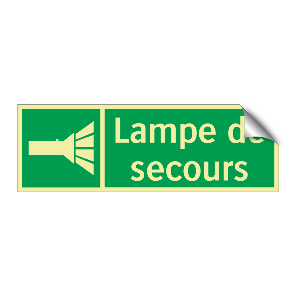 Panneau de secours avec le texte Lampe de secours et une symbolique claire