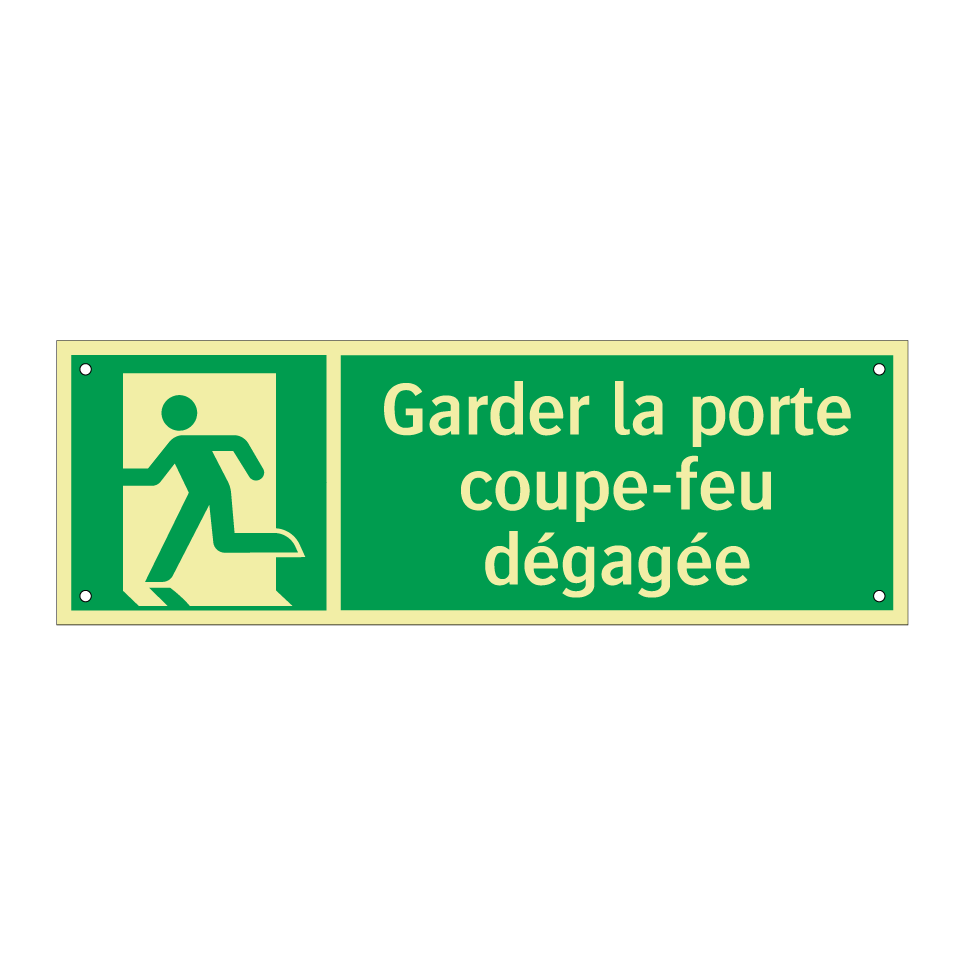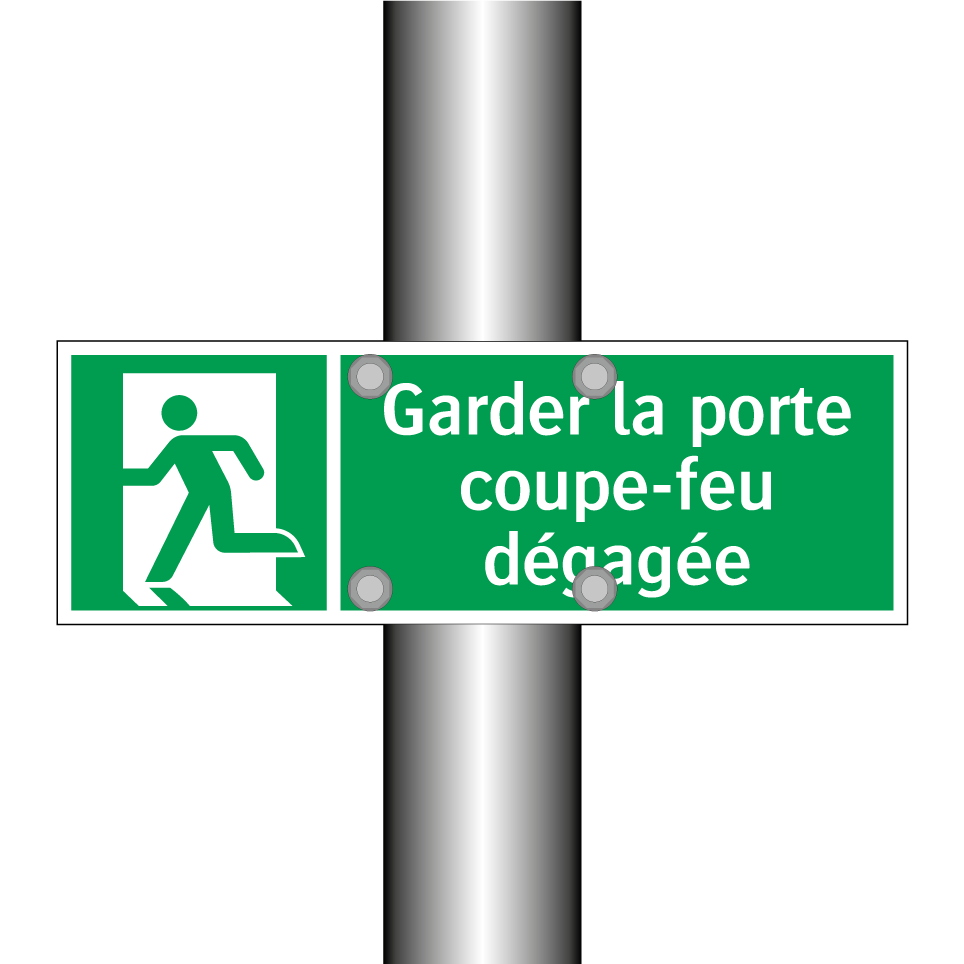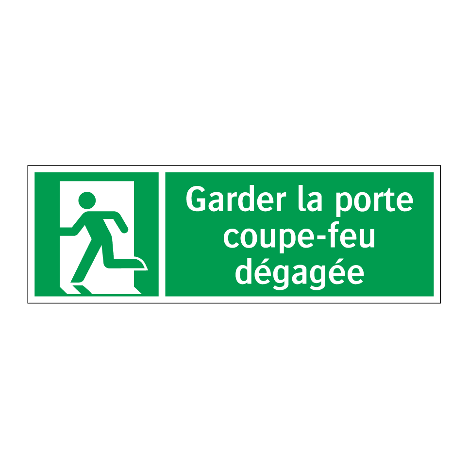 Panneau de secours avec le texte Garder la porte coupe-feu dégagée et une symbolique claire