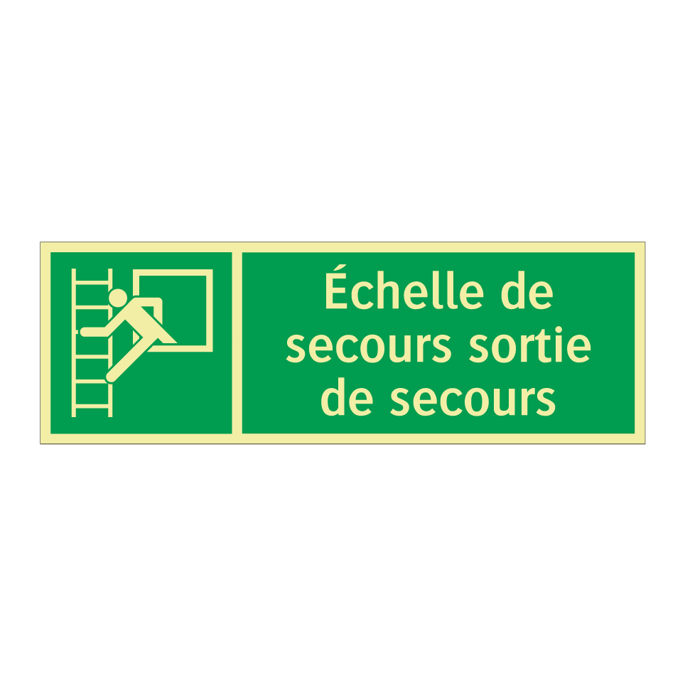 Panneau de secours avec le texte Échelle de secours sortie de secours et une symbolique claire
