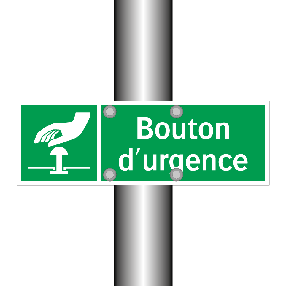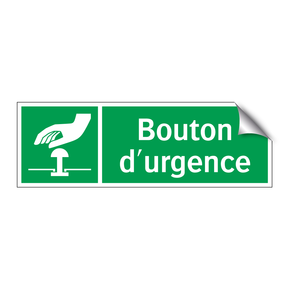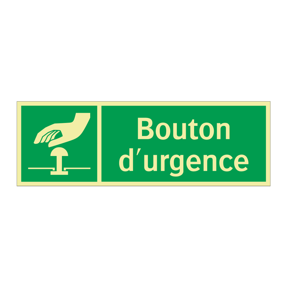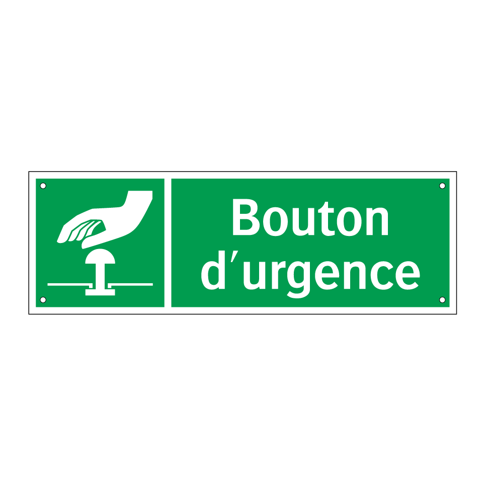 Panneau de secours avec le texte Bouton d'urgence et une symbolique claire
