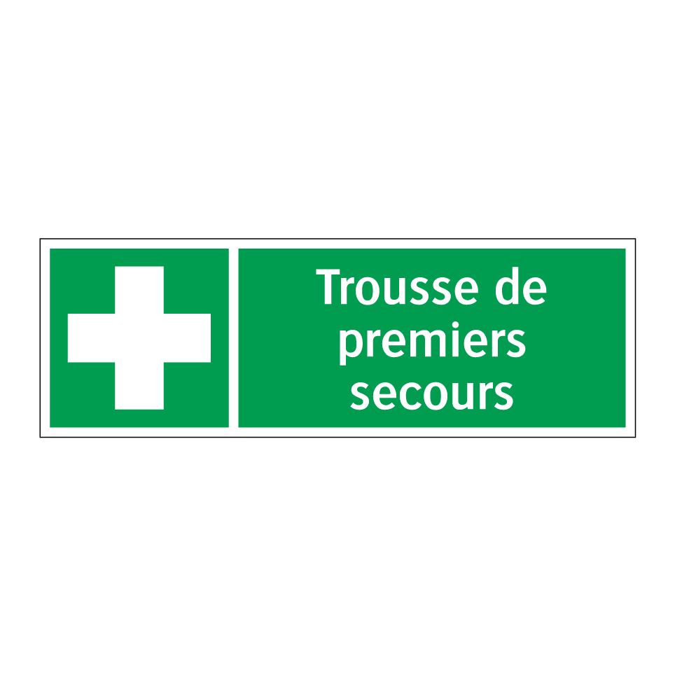 Panneau de secours avec le texte Trousse de premiers secours et une symbolique claire