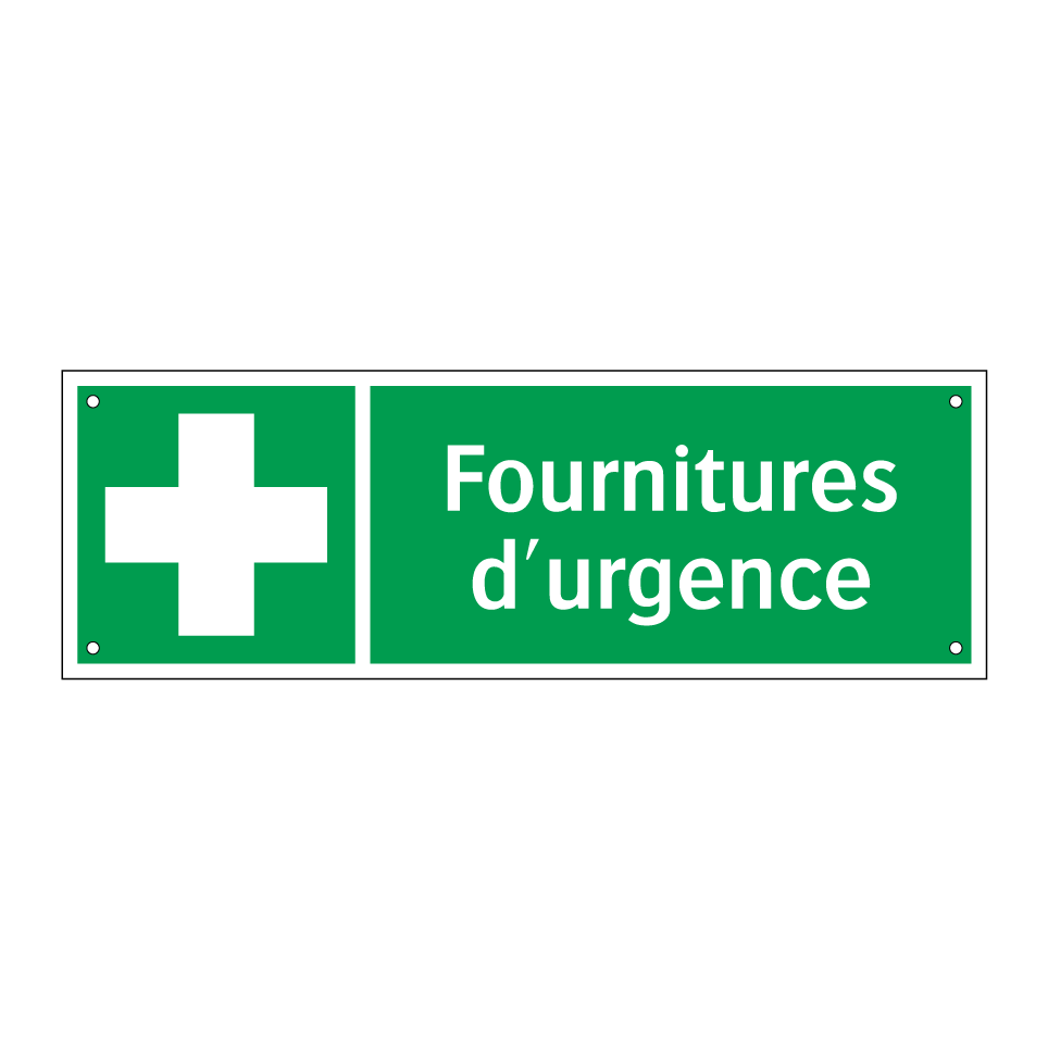 Cette enseigne d'urgence, avec son fond vert et son texte blanc, est idéale pour signaler l'emplacement des fournitures de secours dans divers environnements. Elle peut être installée dans des bureaux, des usines, des écoles ou tout autre lieu public où la sécurité est primordiale. Grâce à son symbole clair et son message en français, elle assure une compréhension rapide et efficace, facilitant l'accès aux équipements de secours en cas de besoin. Placez-la à des endroits stratégiques pour garantir une visibilité optimale et renforcer la sécurité de votre espace.