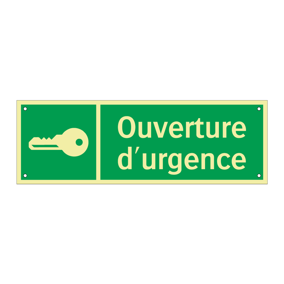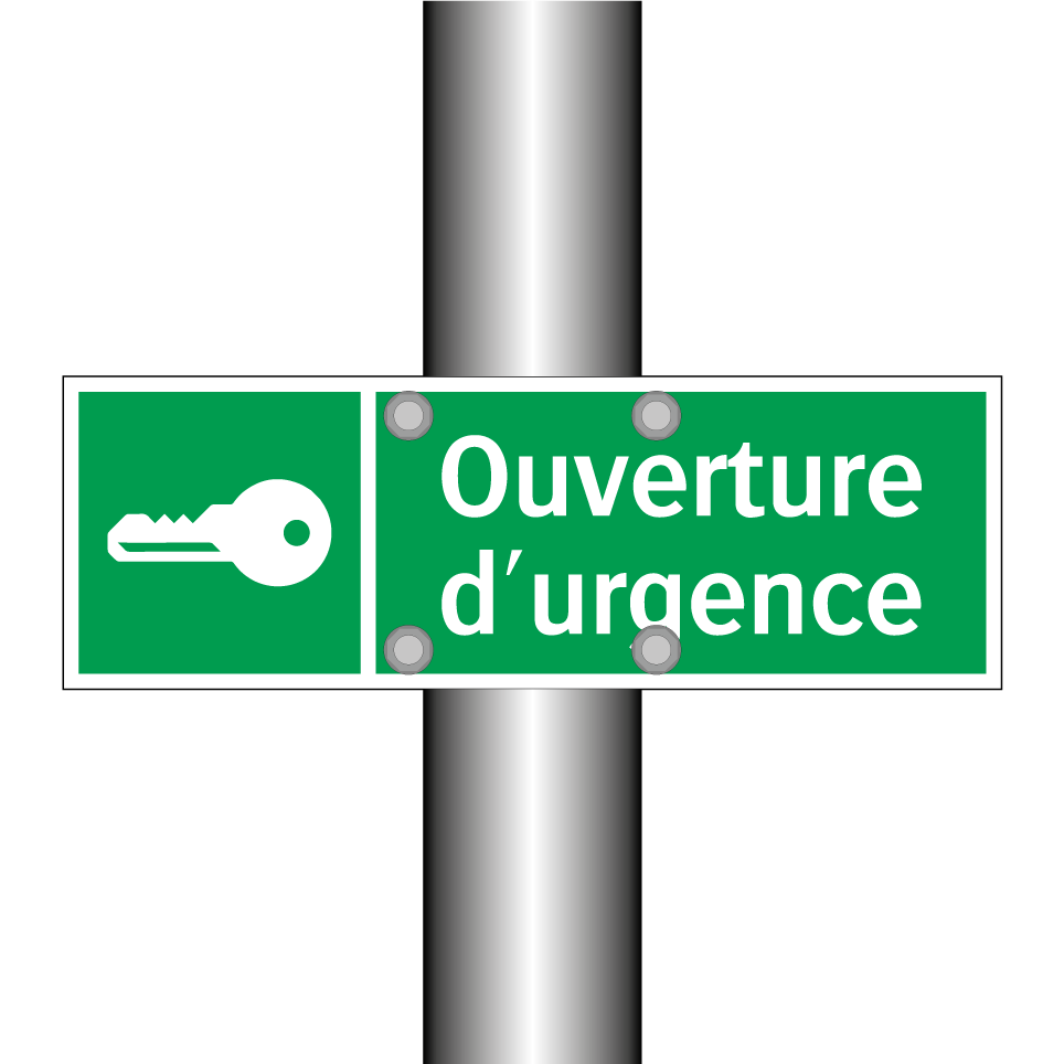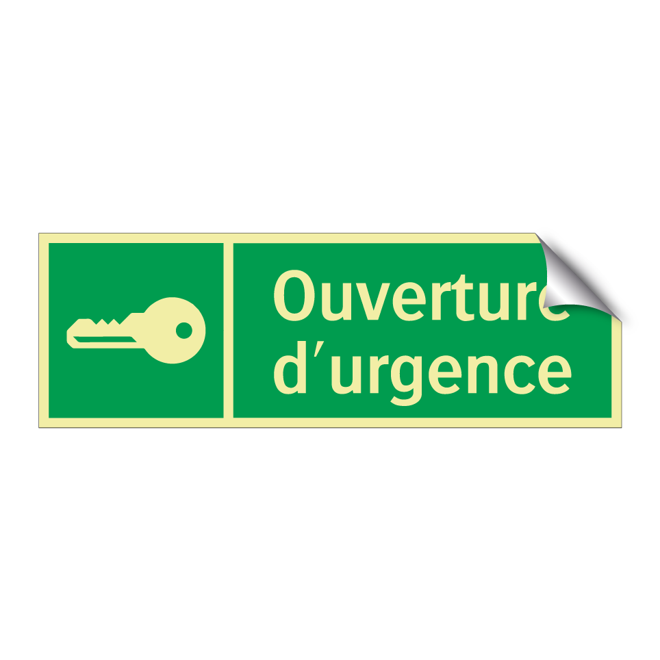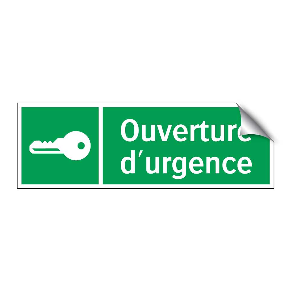 Panneau de secours avec le texte Ouverture d'urgence et une symbolique claire