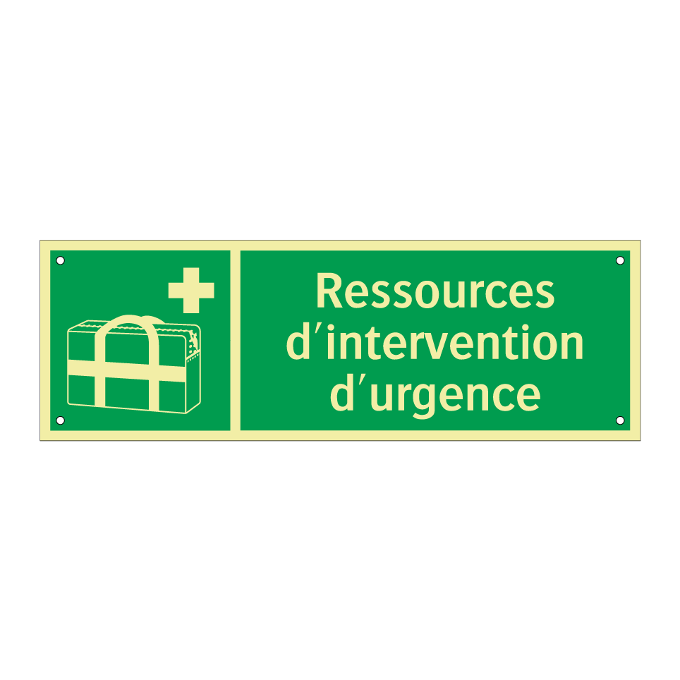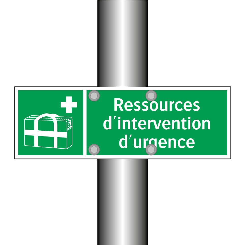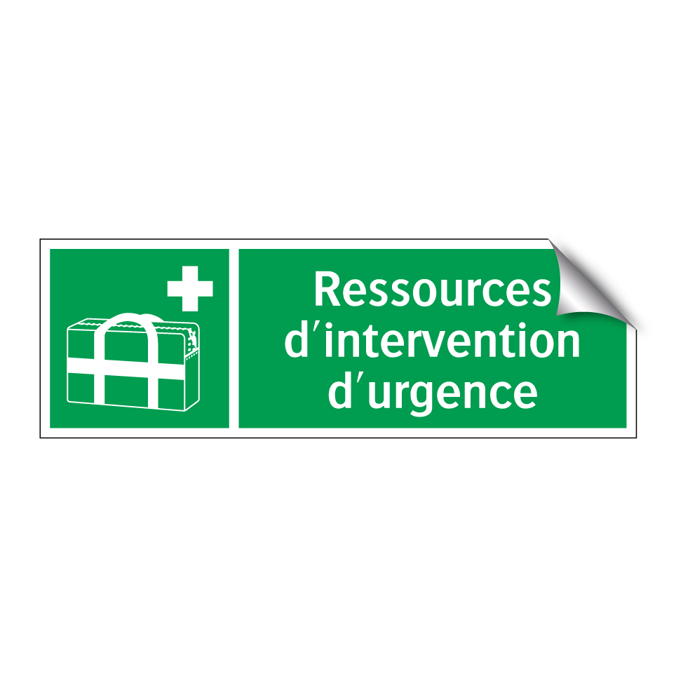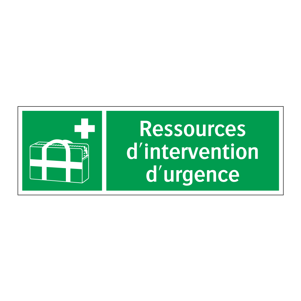 Panneau de secours avec le texte Ressources d'intervention d'urgence et une symbolique claire