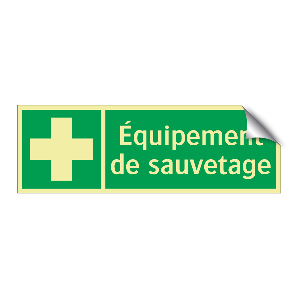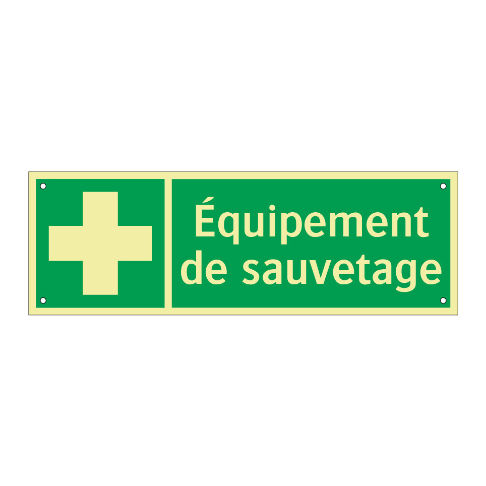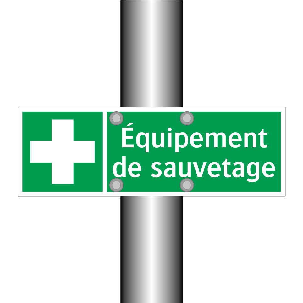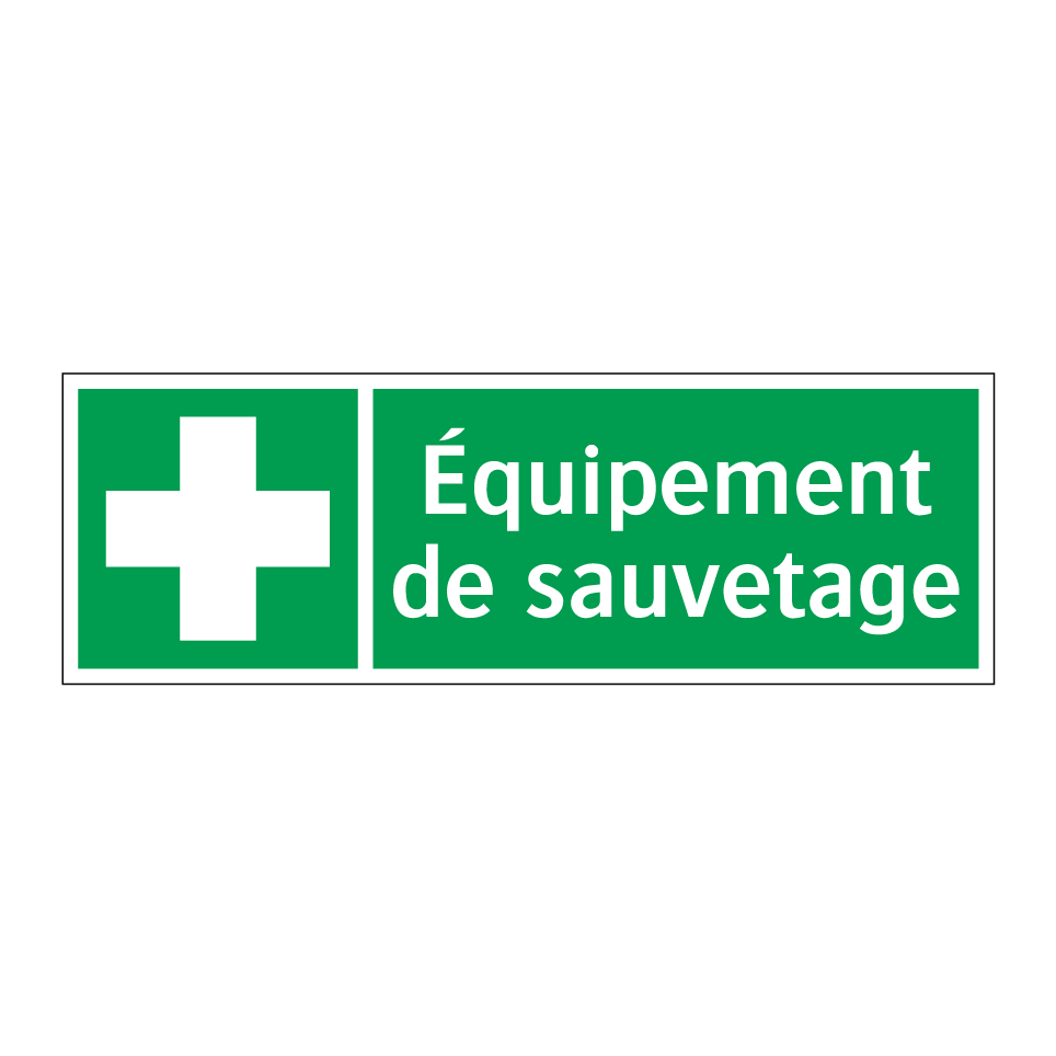 Panneau de secours avec le texte Équipement de sauvetage et une symbolique claire