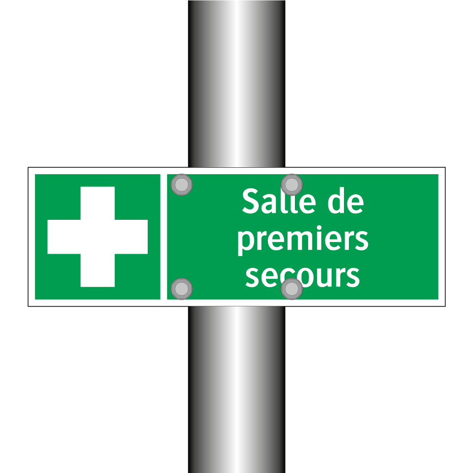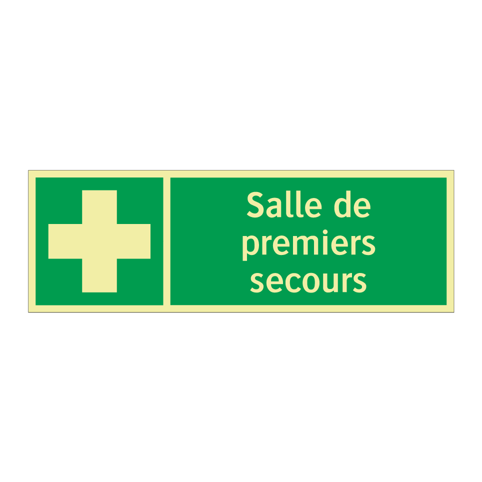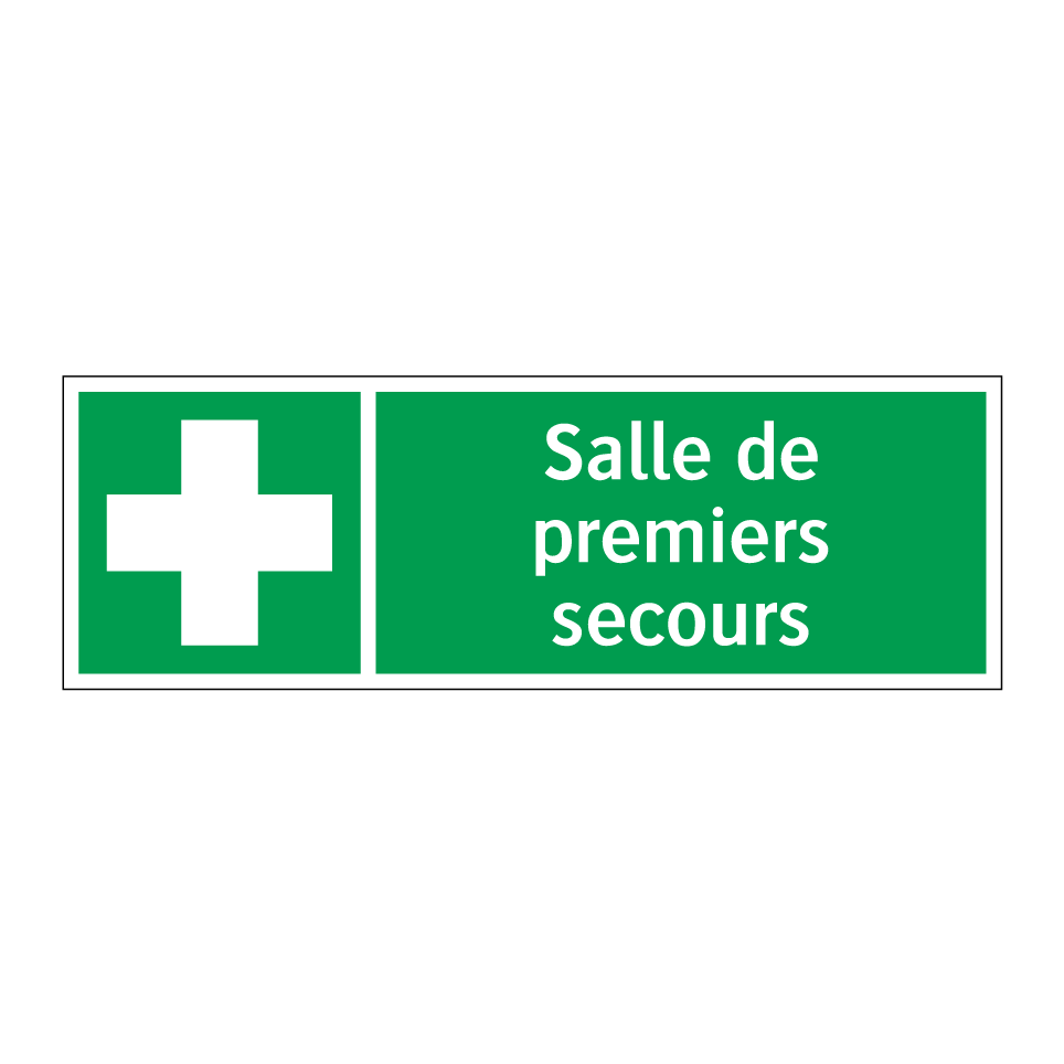 Panneau de secours avec le texte Salle de premiers secours et une symbolique claire