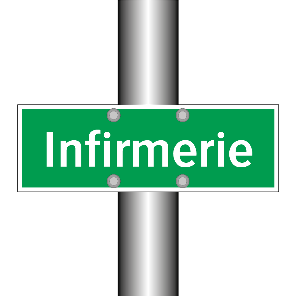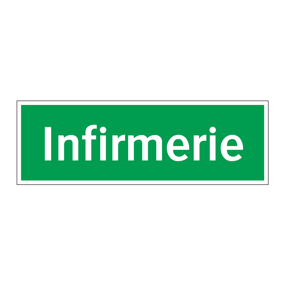 Cette enseigne d'urgence, avec son fond vert et son texte blanc, est idéale pour indiquer l'emplacement d'une infirmerie dans divers environnements. Elle est conçue pour être placée dans des établissements tels que les écoles, les bureaux, les usines ou tout autre lieu nécessitant une signalisation claire pour les premiers secours. Grâce à sa visibilité accrue, elle guide efficacement le personnel et les visiteurs vers les installations médicales en cas de besoin. Cette signalétique est essentielle pour assurer la sécurité et le bien-être dans les espaces publics et privés.