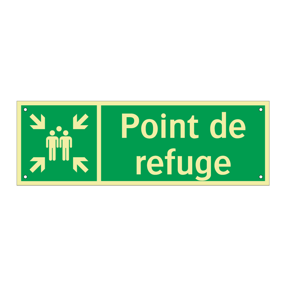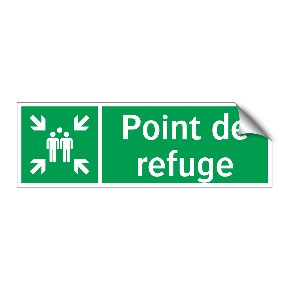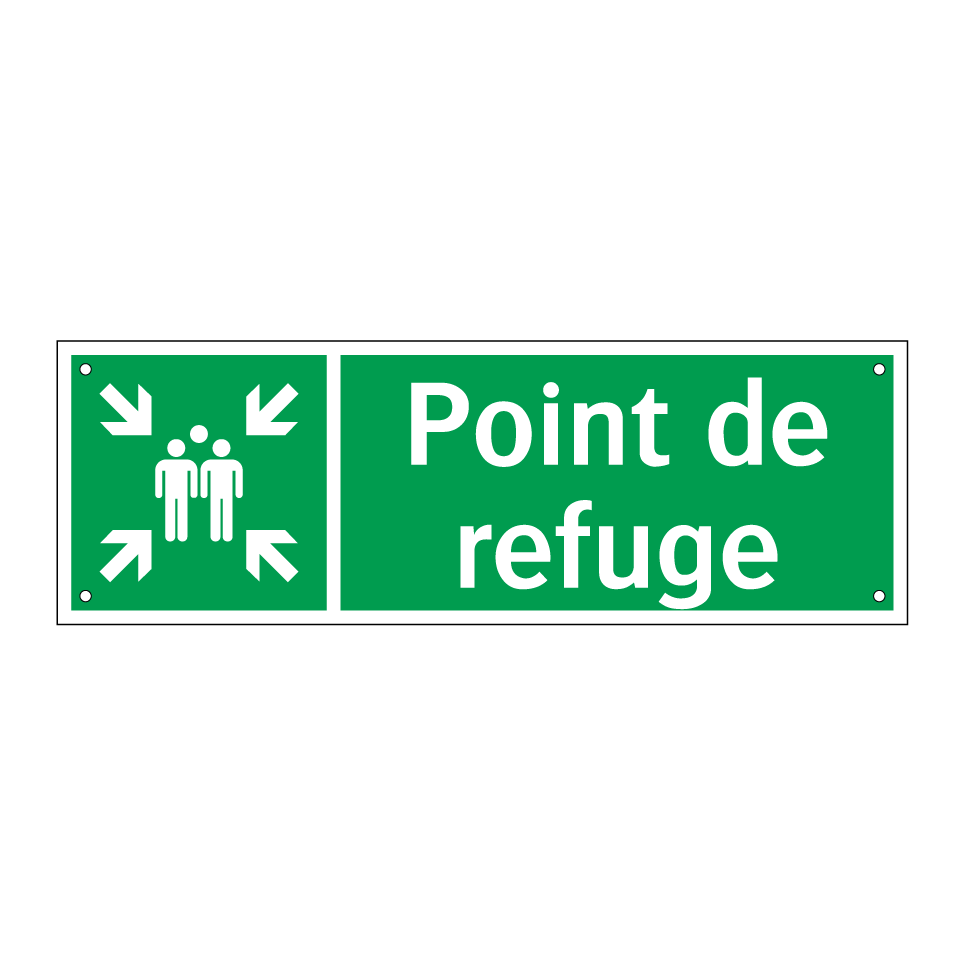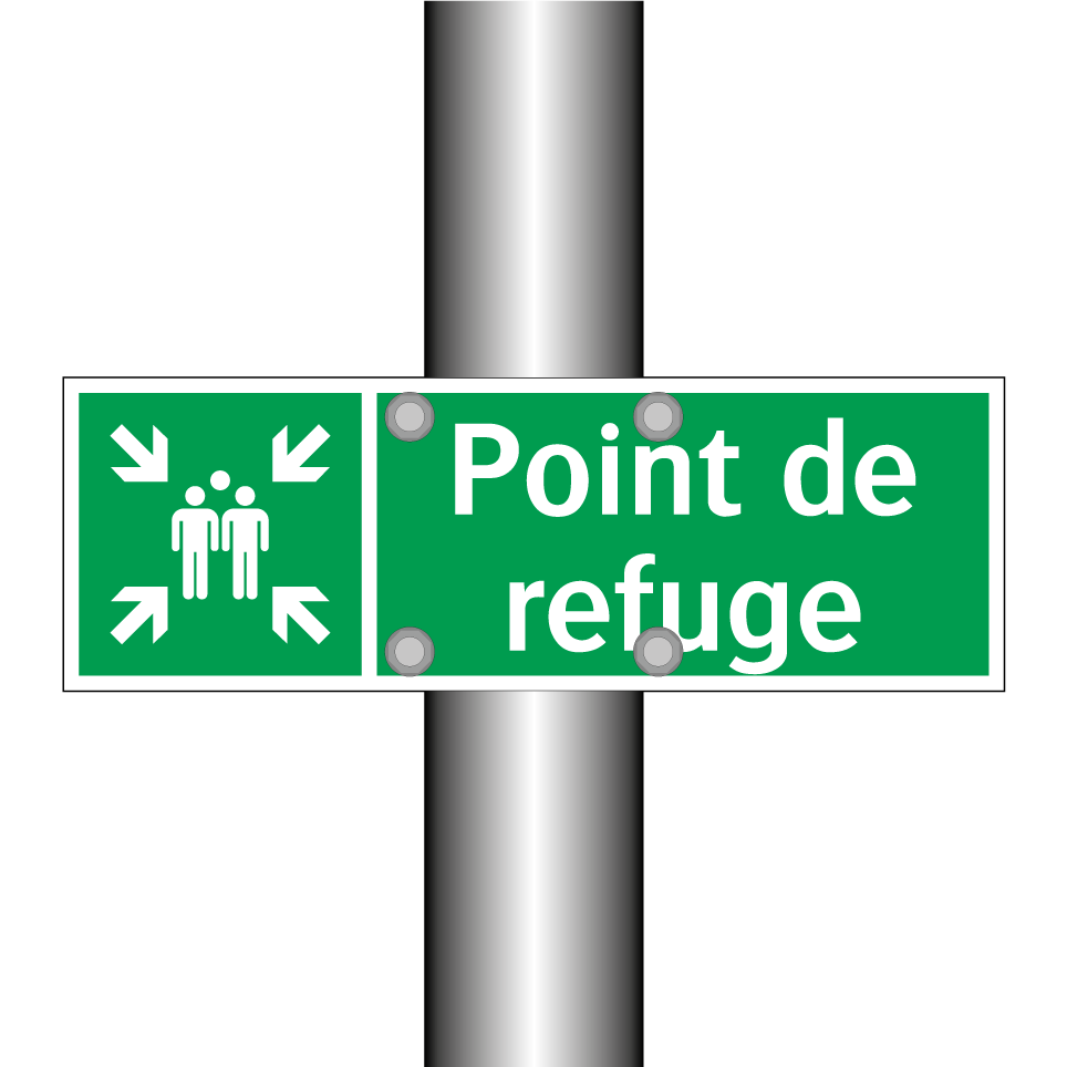 Panneau de secours avec le texte Point de refuge et une symbolique claire
