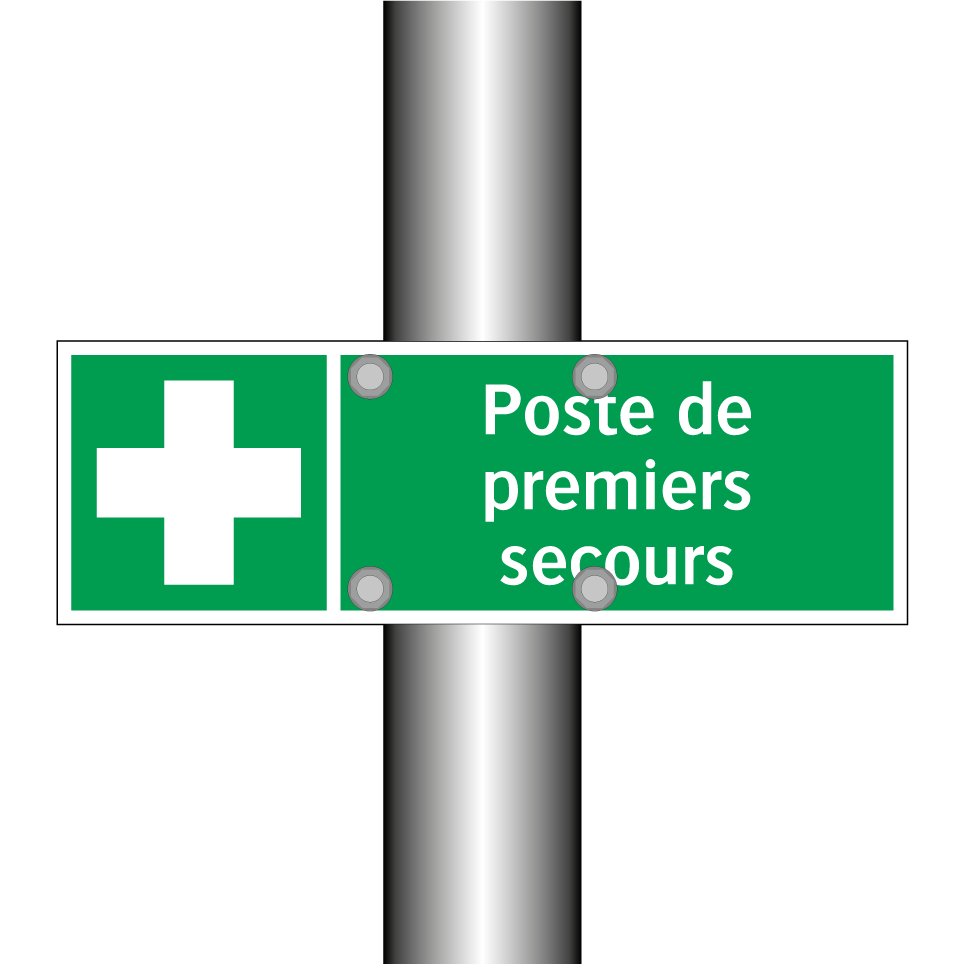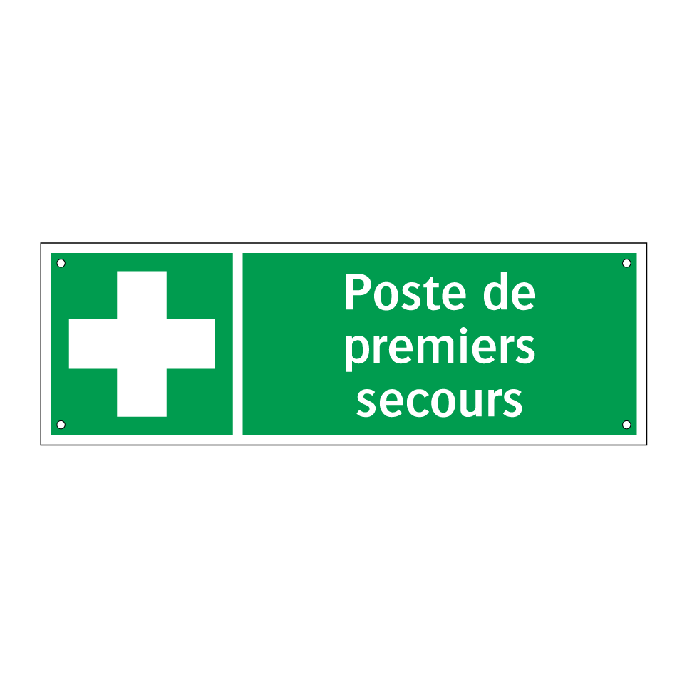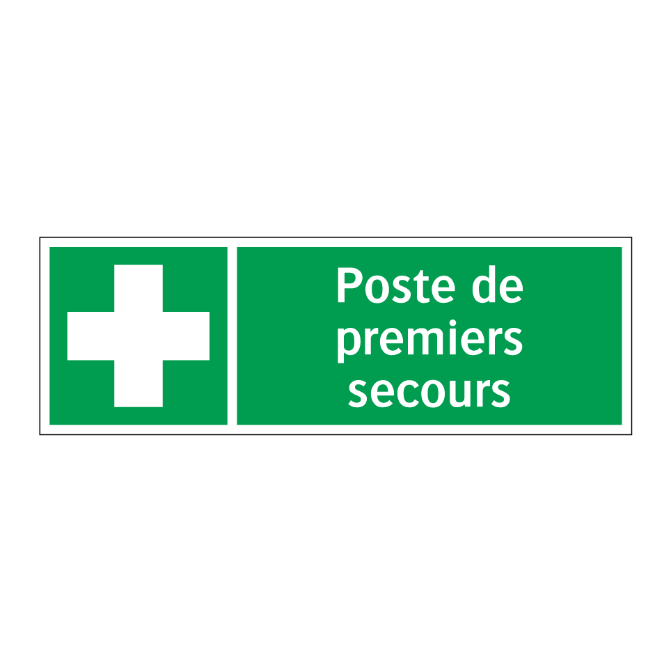 Panneau de secours avec le texte Poste de premiers secours et une symbolique claire