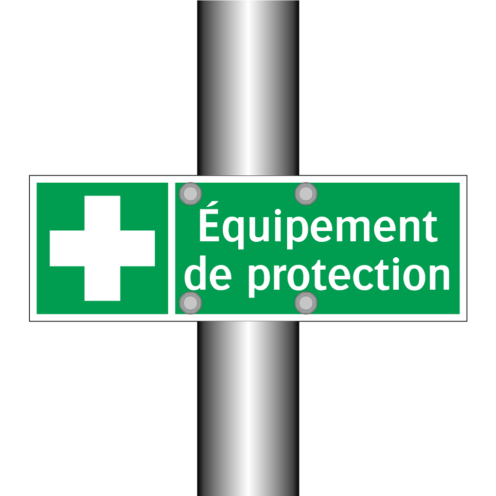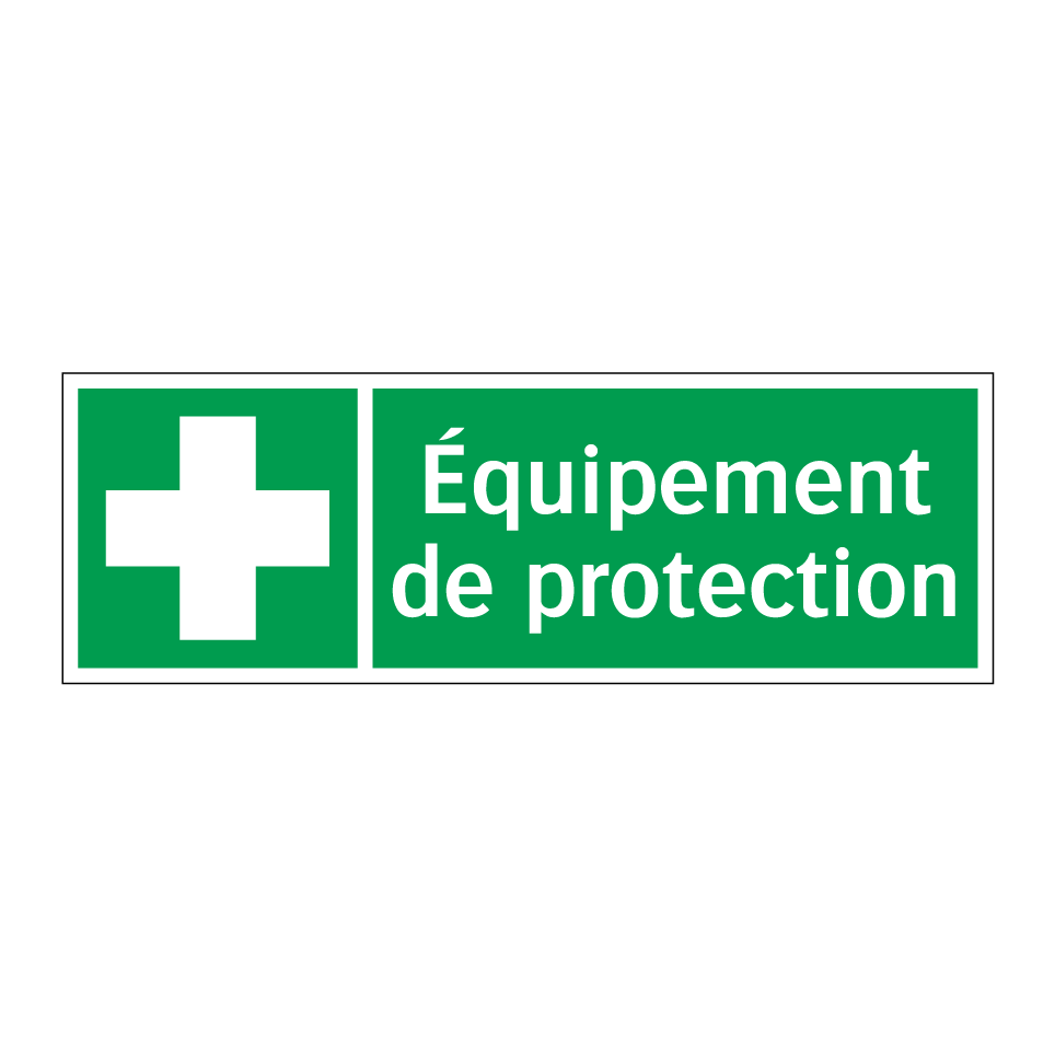 Panneau de secours avec le texte Équipement de protection et une symbolique claire