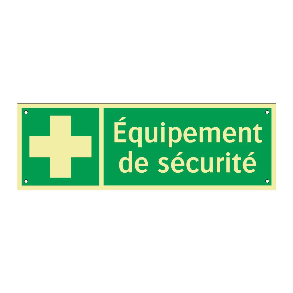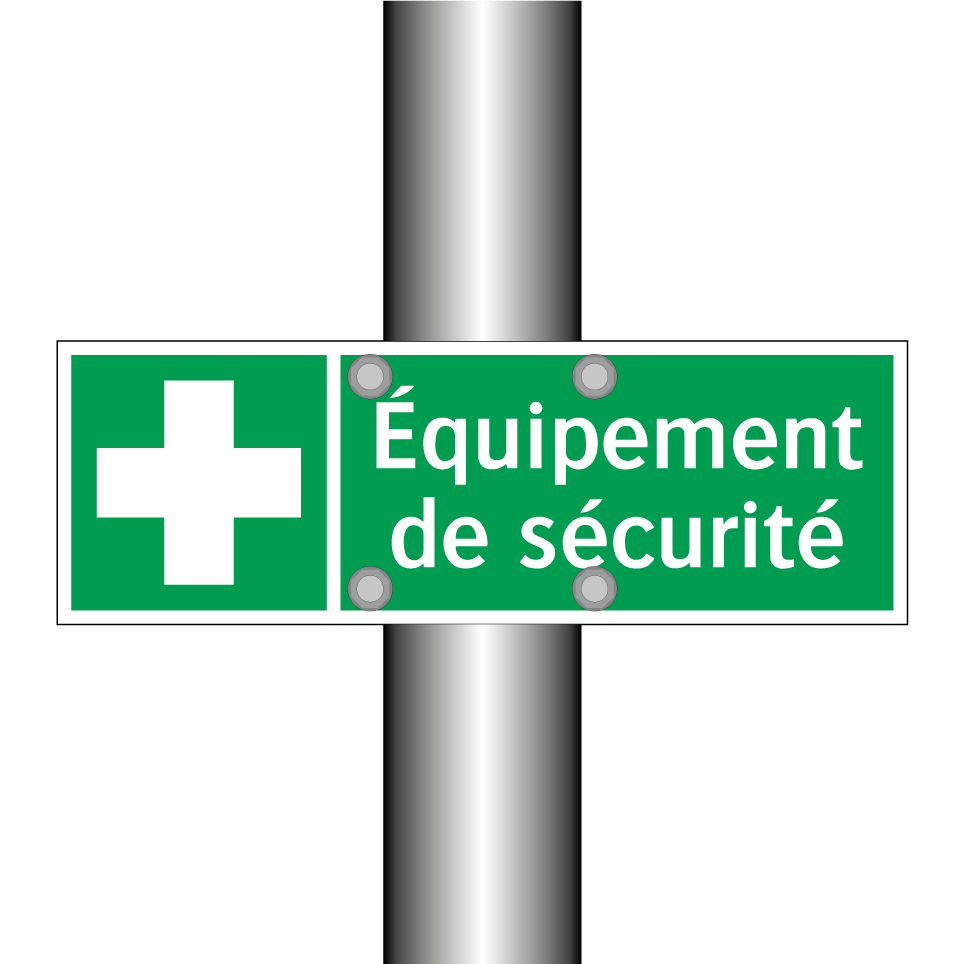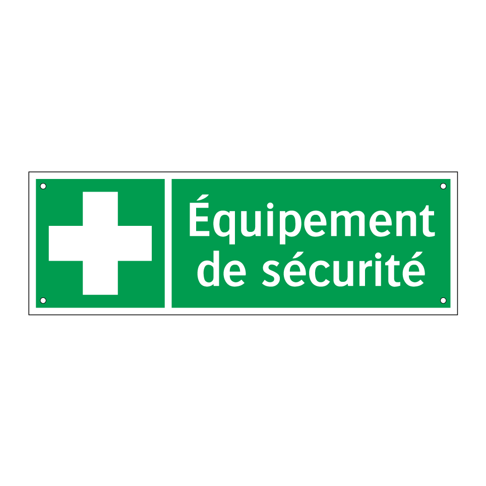 Panneau de secours avec le texte Équipement de sécurité et une symbolique claire