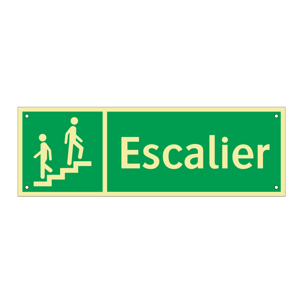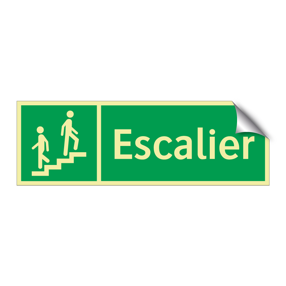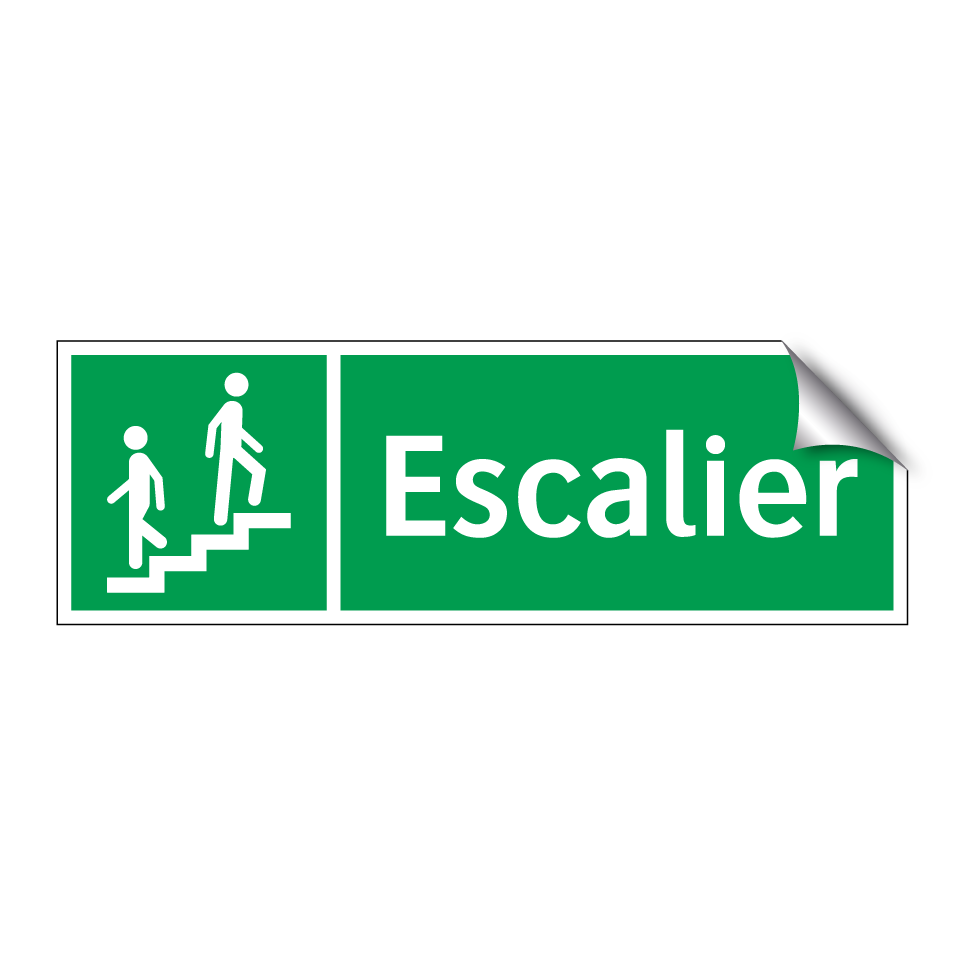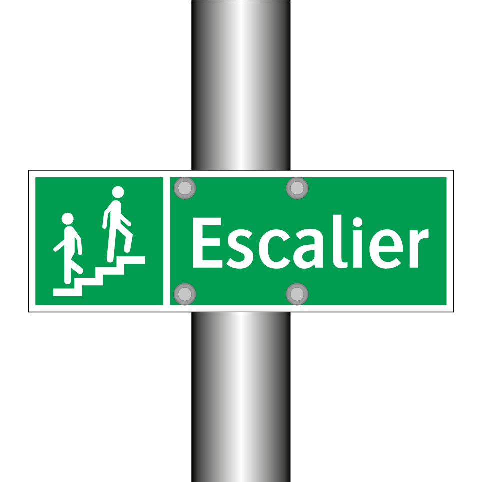 Panneau de secours avec le texte Escalier et une symbolique claire