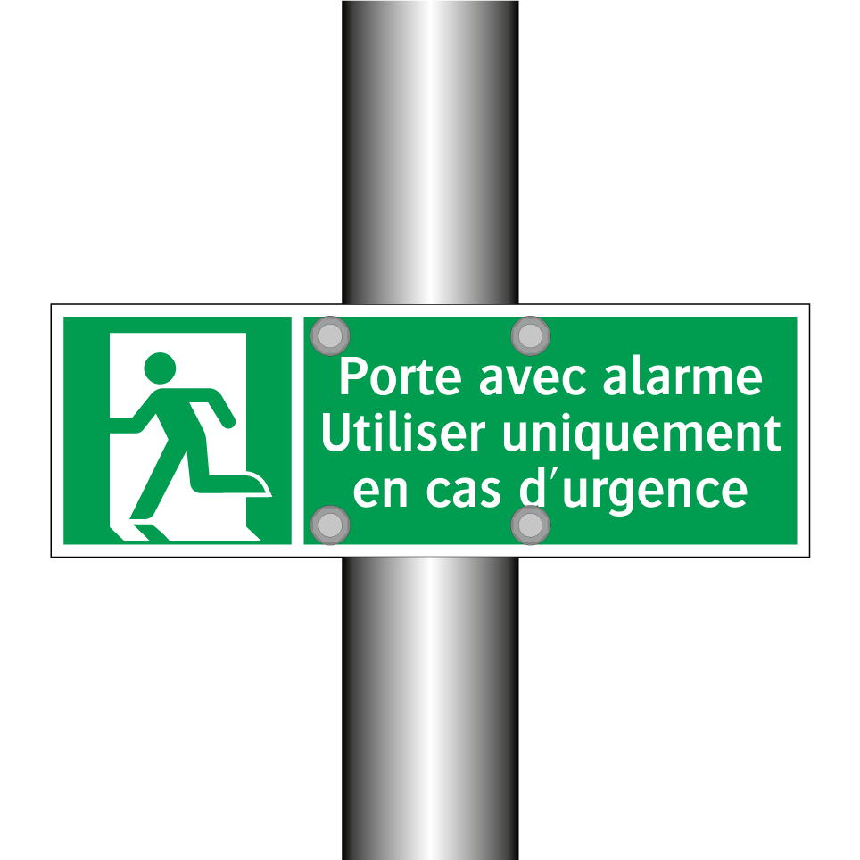 Cette signalisation d'urgence est idéale pour les sorties de secours et les portes équipées d'un système d'alarme. Elle est conçue pour être placée dans des lieux publics tels que les centres commerciaux, les bureaux, les écoles et les hôpitaux. Sa couleur verte et son texte blanc assurent une visibilité optimale, même dans des conditions de faible éclairage. Utilisez cette pancarte pour indiquer clairement les issues de secours et garantir la sécurité des occupants en cas de situation critique. Sa présence est essentielle pour une évacuation rapide et efficace.