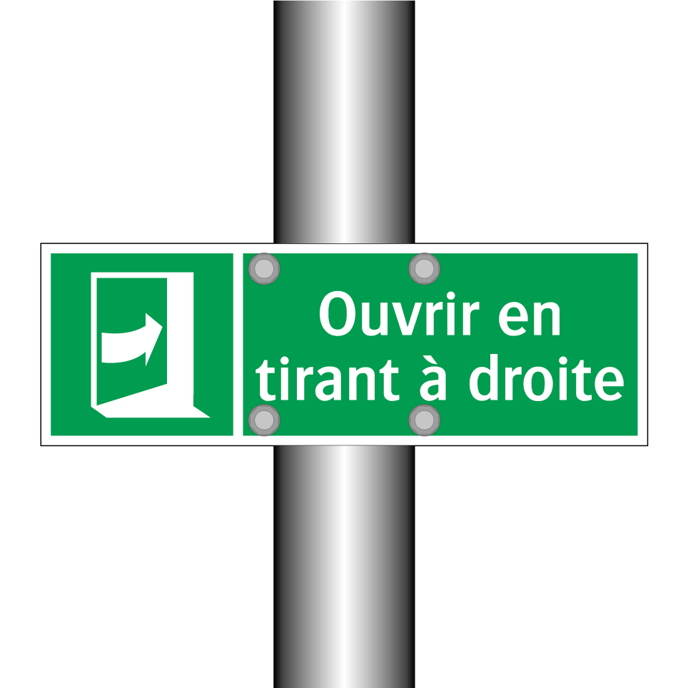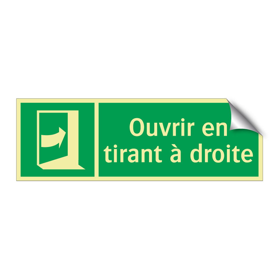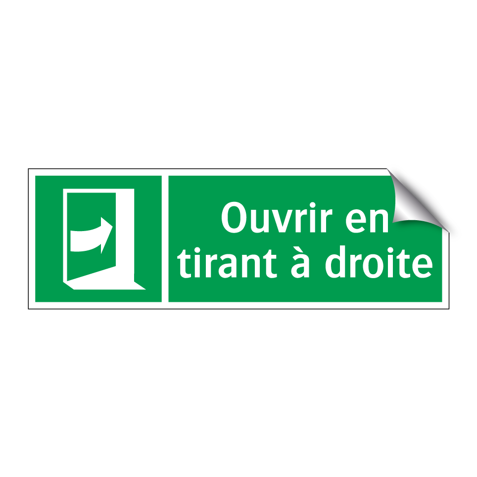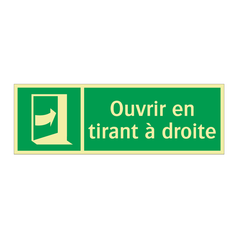 Panneau de secours avec le texte Ouvrir en tirant à droite et une symbolique claire