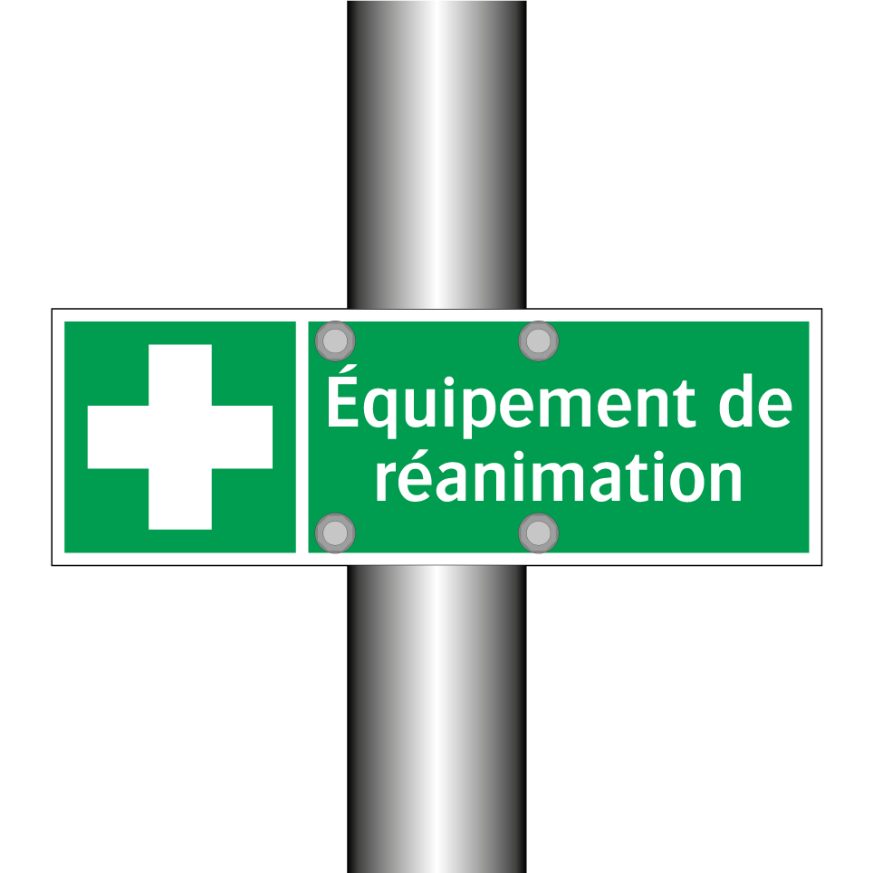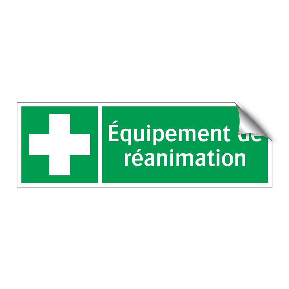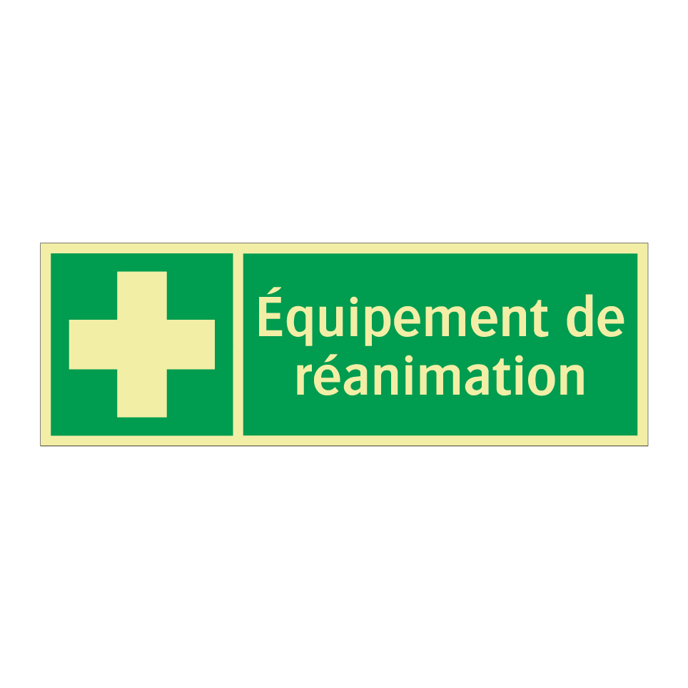 Panneau de secours avec le texte Équipement de réanimation et une symbolique claire