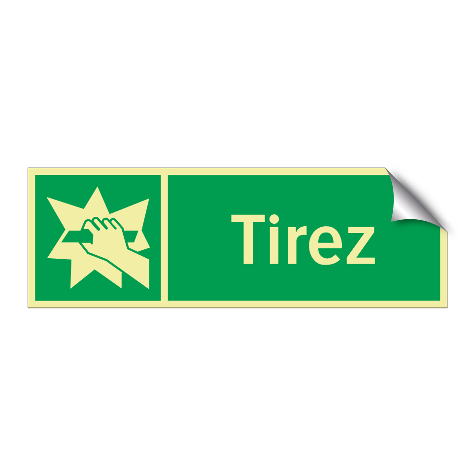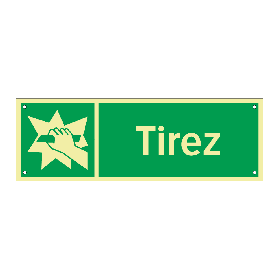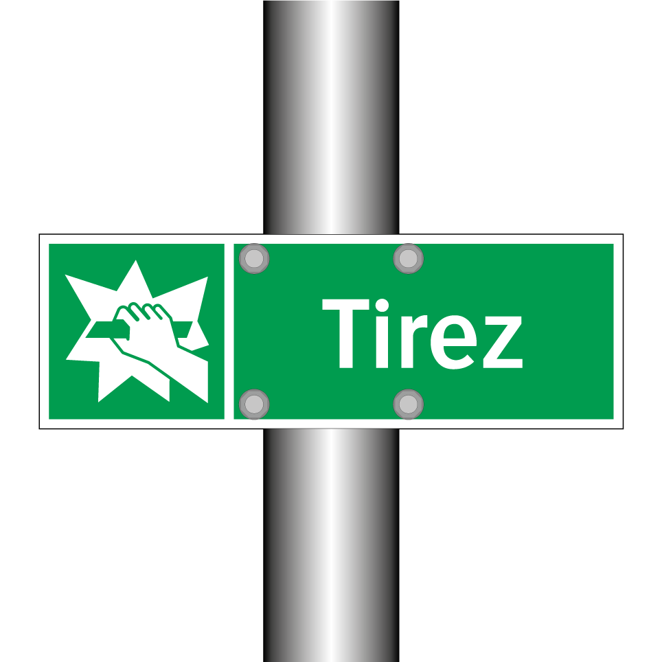 Panneau de secours avec le texte Tirez et une symbolique claire