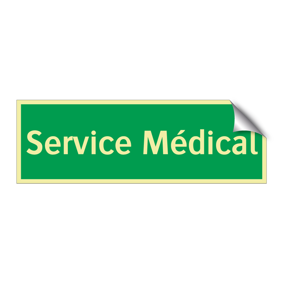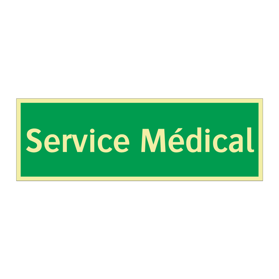 Cette enseigne d'urgence, avec son fond vert et son texte blanc, est idéale pour indiquer la présence d'un service médical. Elle peut être placée dans des hôpitaux, cliniques, ou tout autre établissement de santé pour guider les patients et le personnel vers les services médicaux. Grâce à sa visibilité accrue, elle assure une orientation rapide et efficace en cas de besoin. Cette signalisation est essentielle pour garantir la sécurité et le bien-être dans les environnements médicaux.