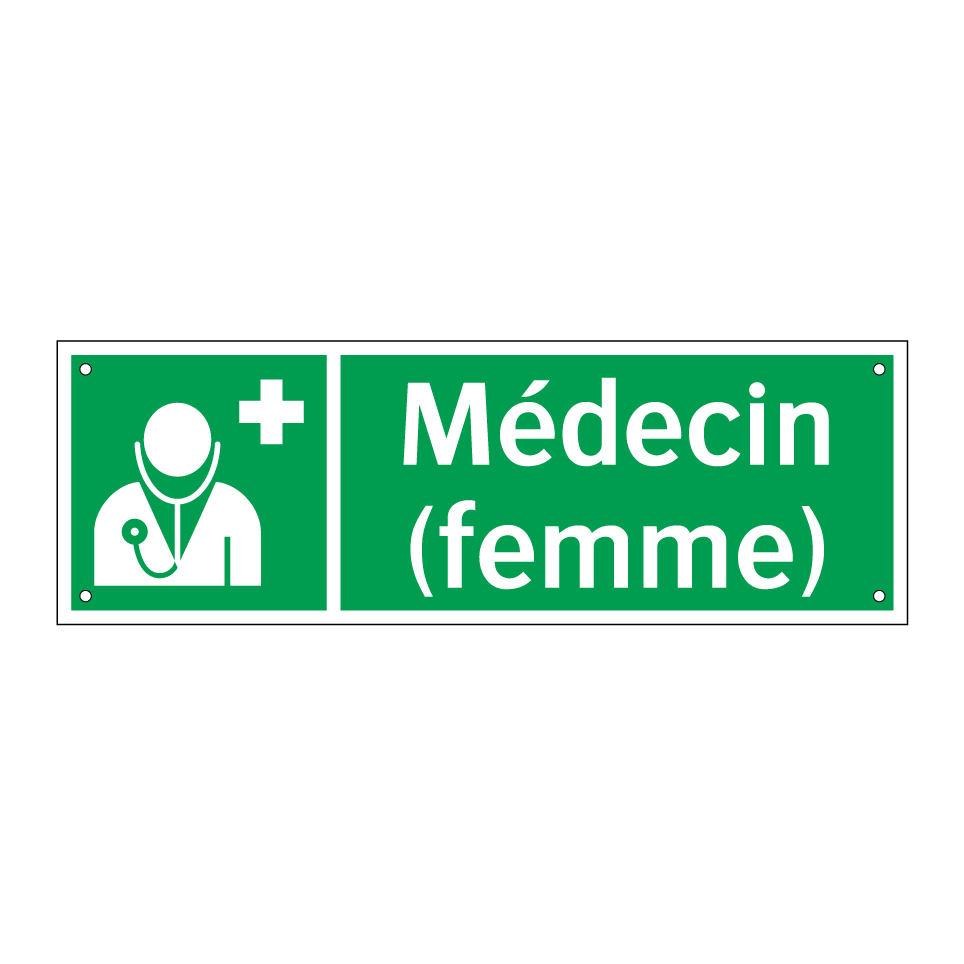 Panneau de secours avec le texte Médecin (femme) et une symbolique claire