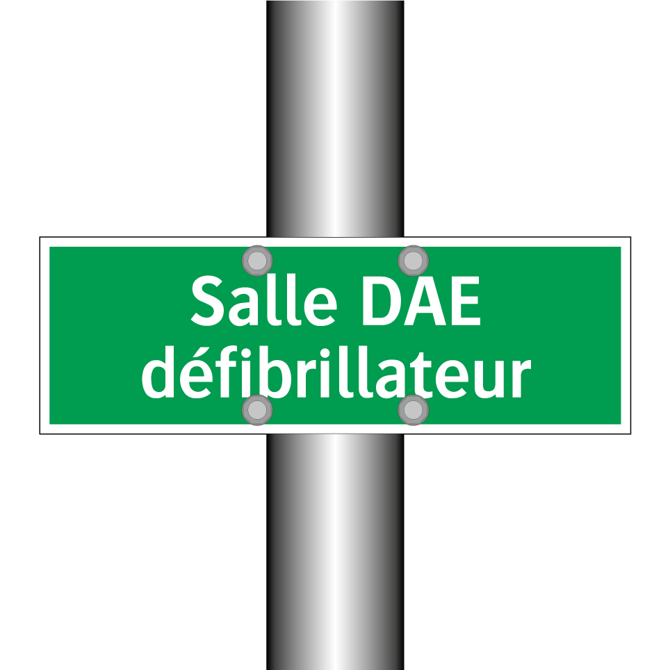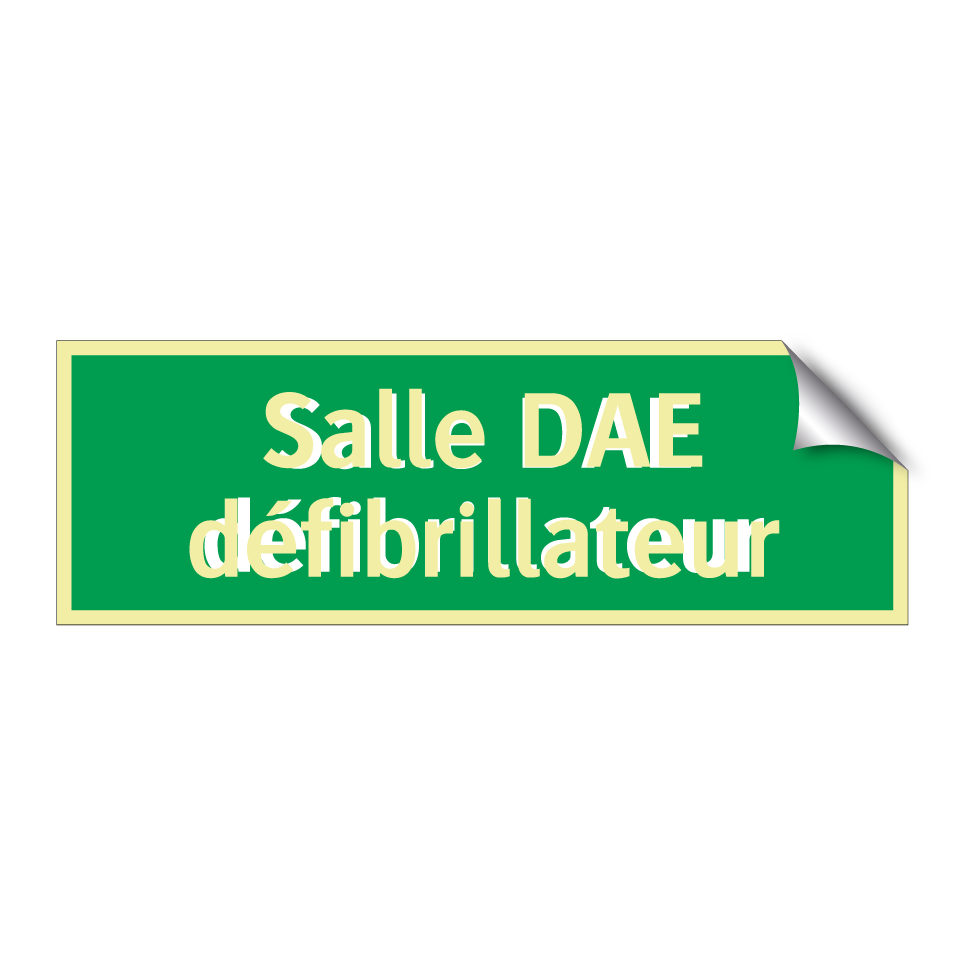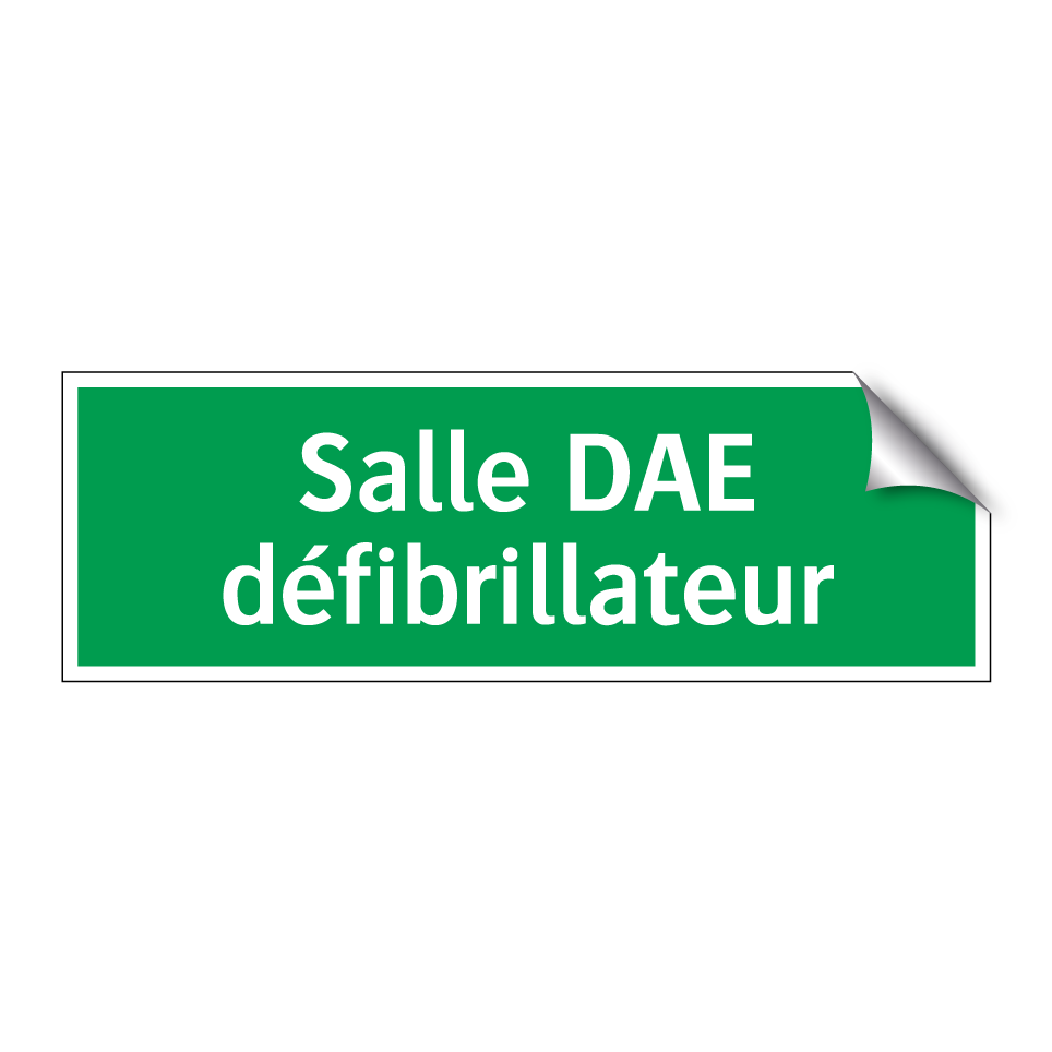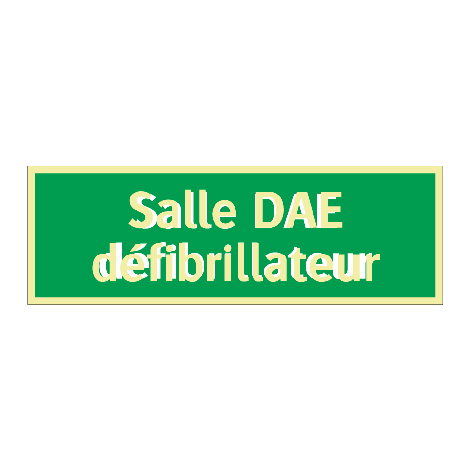 Panneau de secours avec le texte Salle DAE défibrillateur