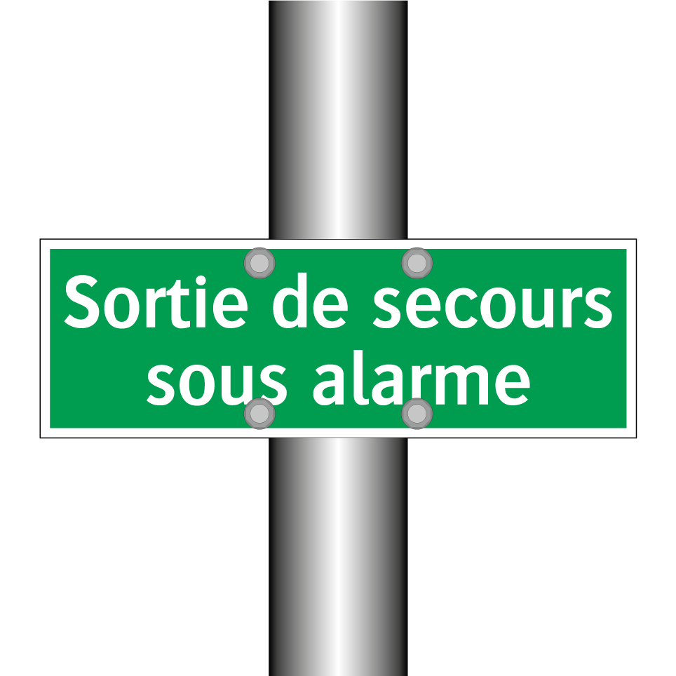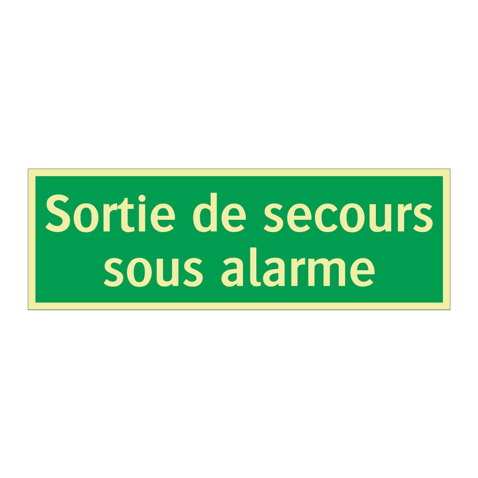 Panneau de secours avec le texte Sortie de secours sous alarme