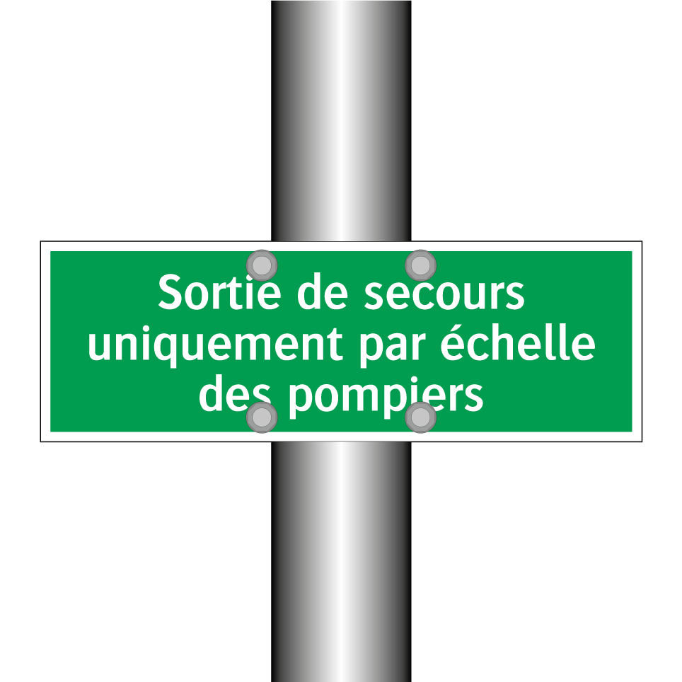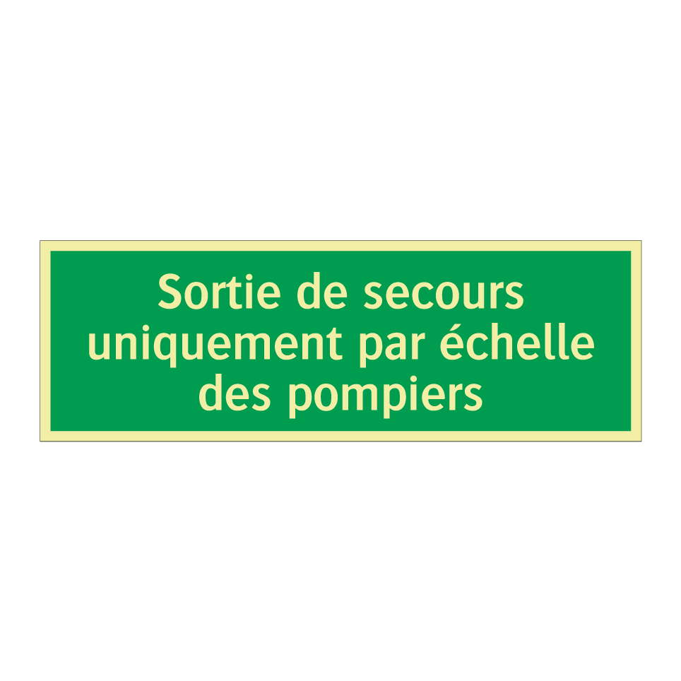 Panneau de secours avec le texte Sortie de secours uniquement par échelle des pompiers