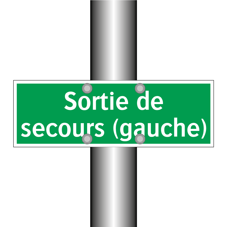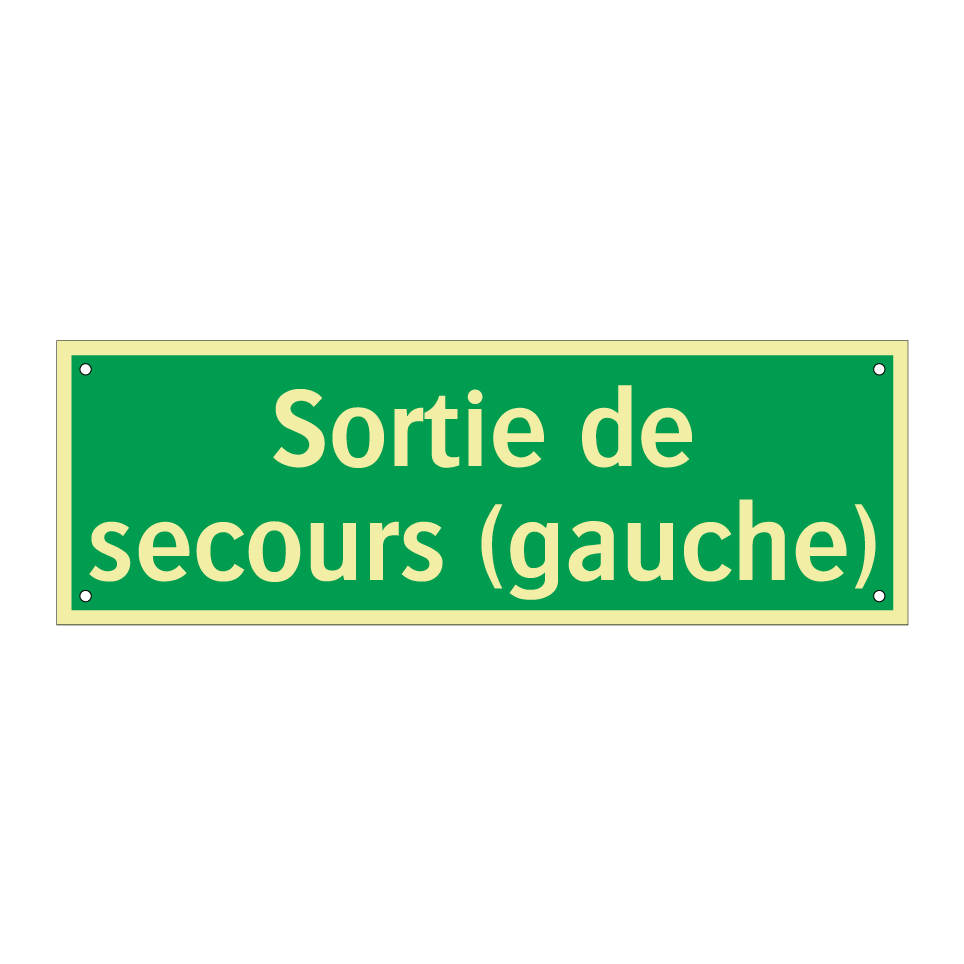 Panneau de secours avec le texte Sortie de secours (gauche)