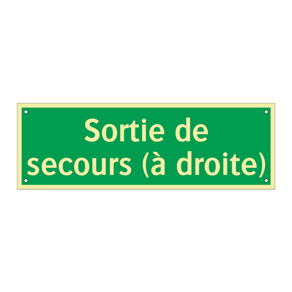 Panneau de secours avec le texte Sortie de secours (à droite)