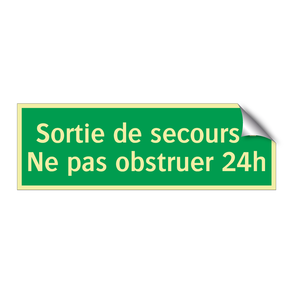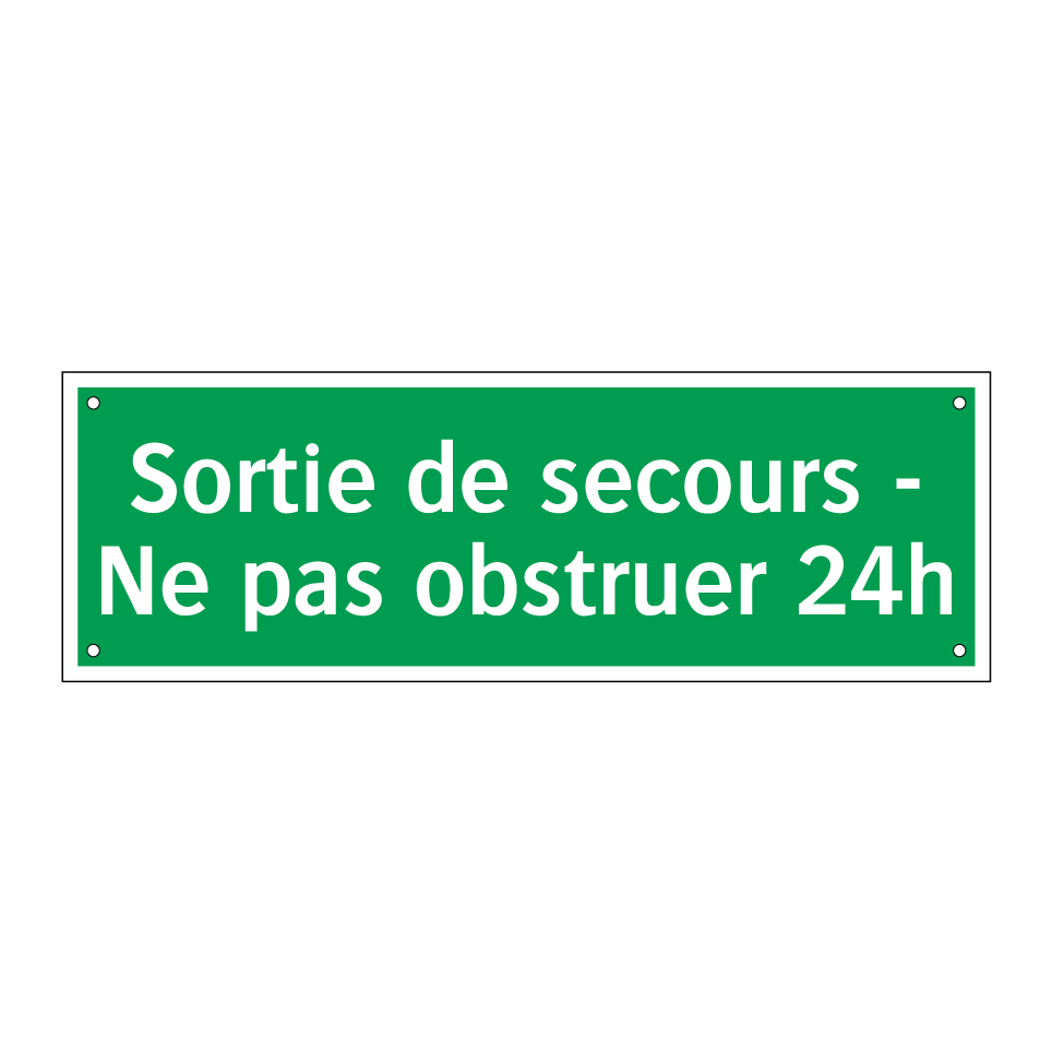 Panneau de secours avec le texte Sortie de secours - Ne pas obstruer 24h