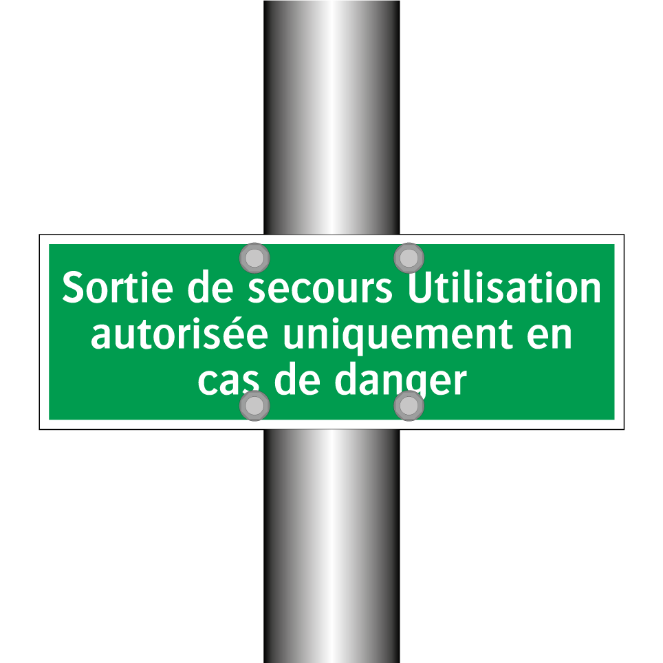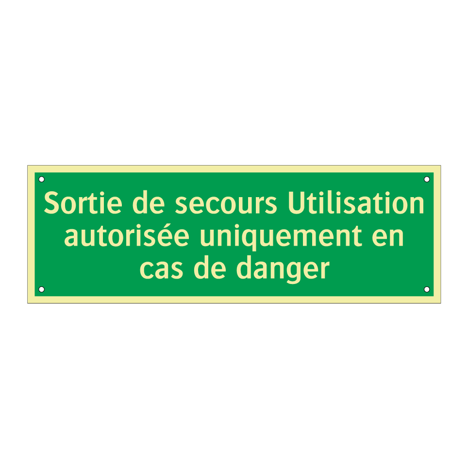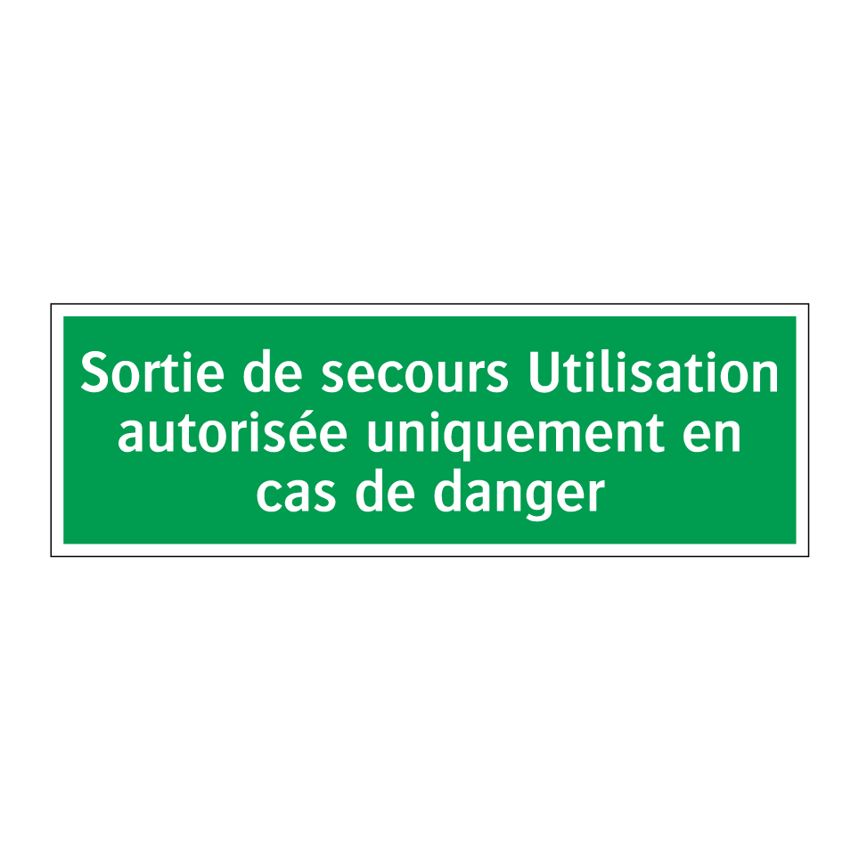 Panneau de secours avec le texte Sortie de secours Utilisation autorisée uniquement en cas de danger