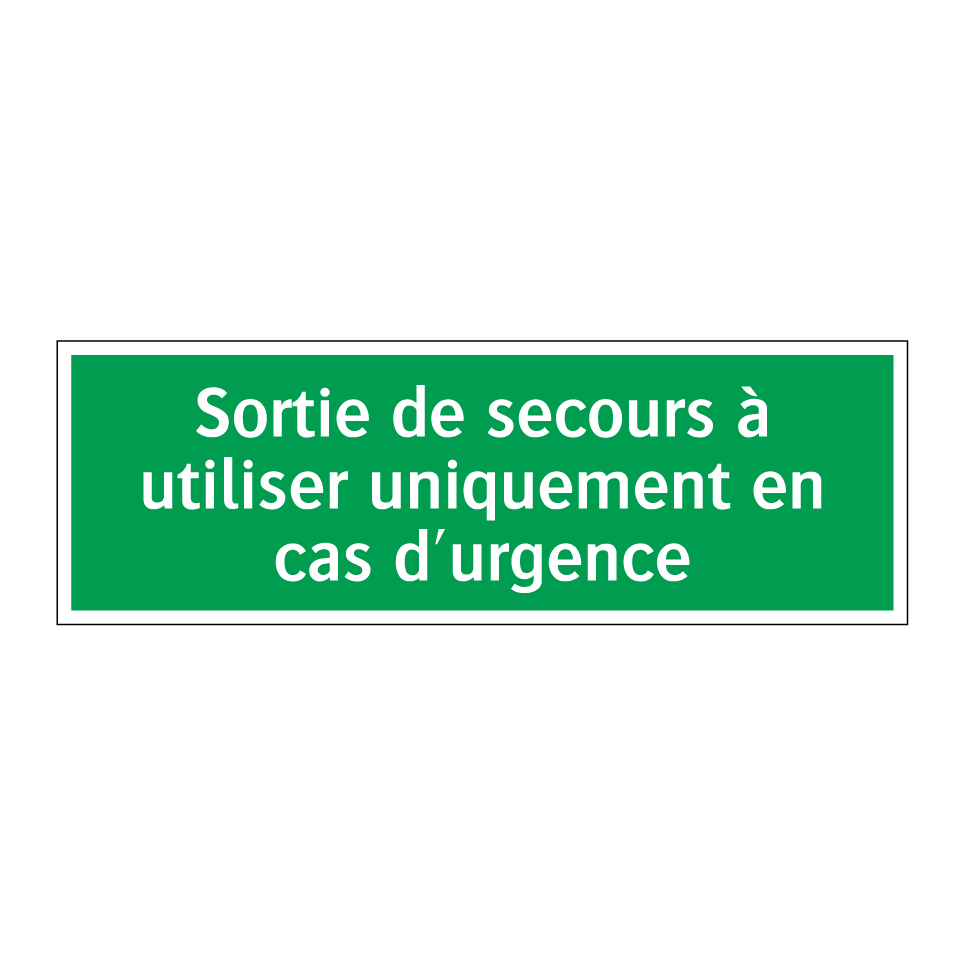 Panneau de secours avec le texte Sortie de secours à utiliser uniquement en cas d'urgence