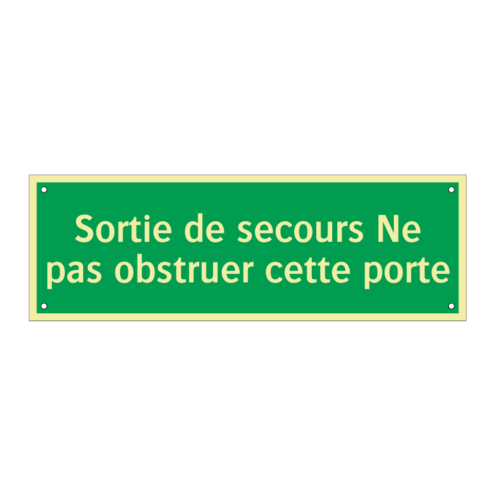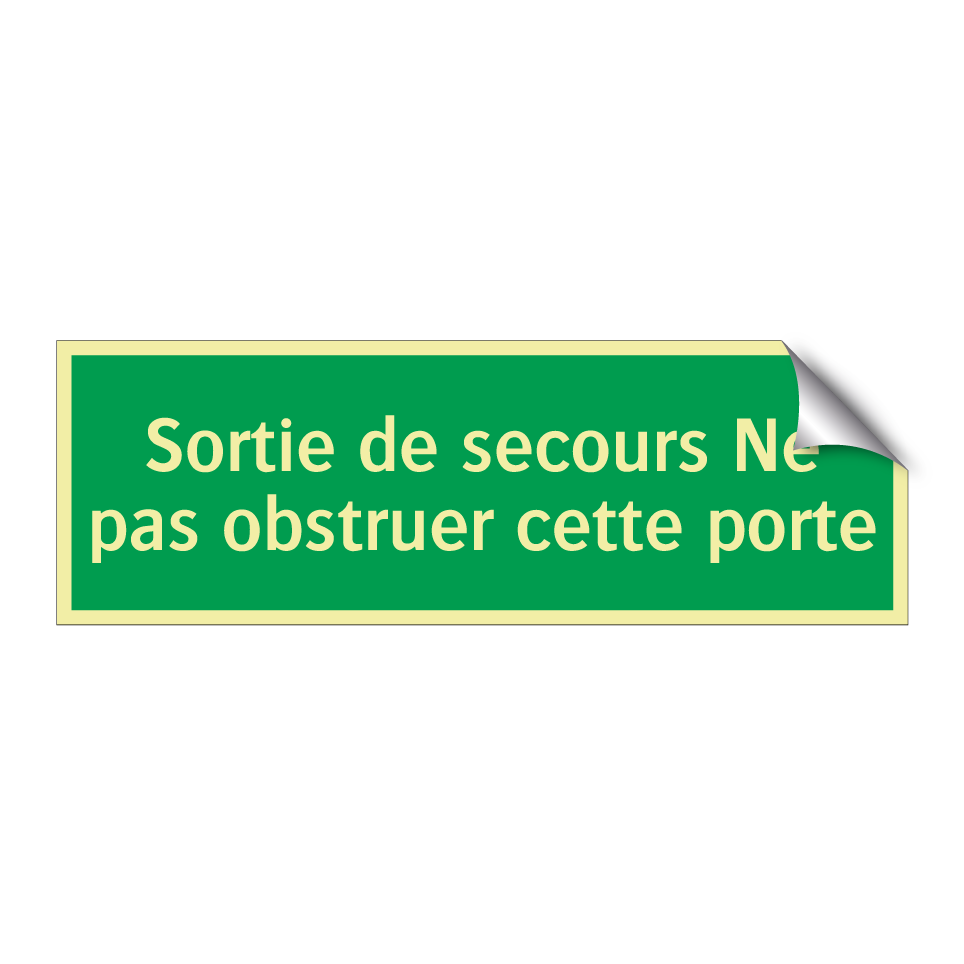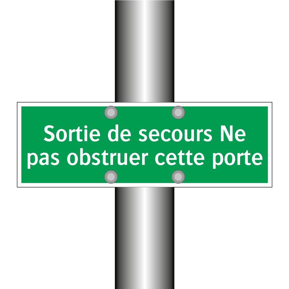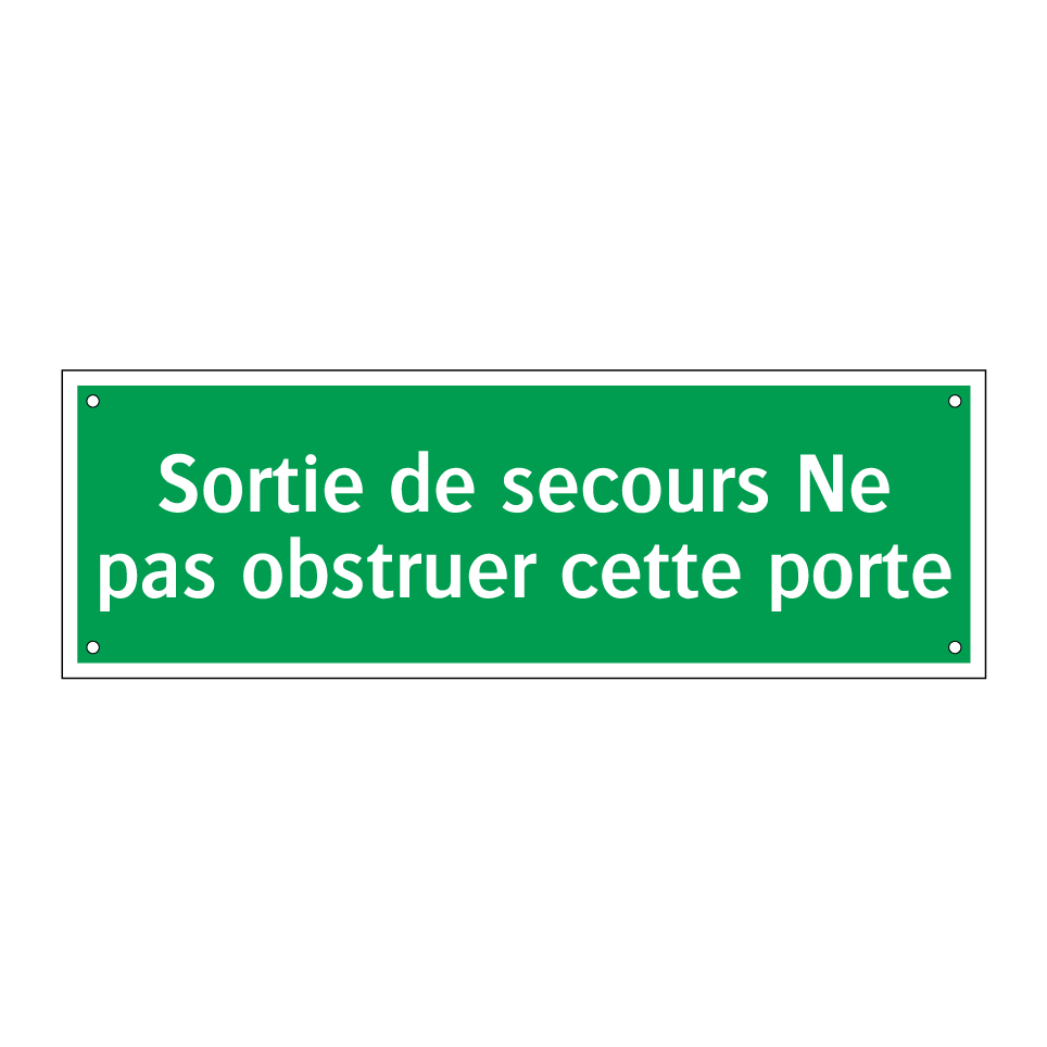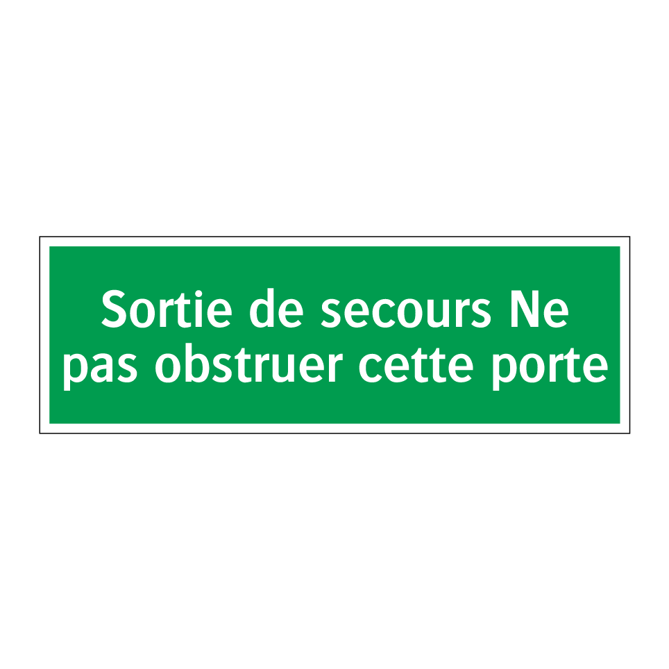 Panneau de secours avec le texte Sortie de secours Ne pas obstruer cette porte