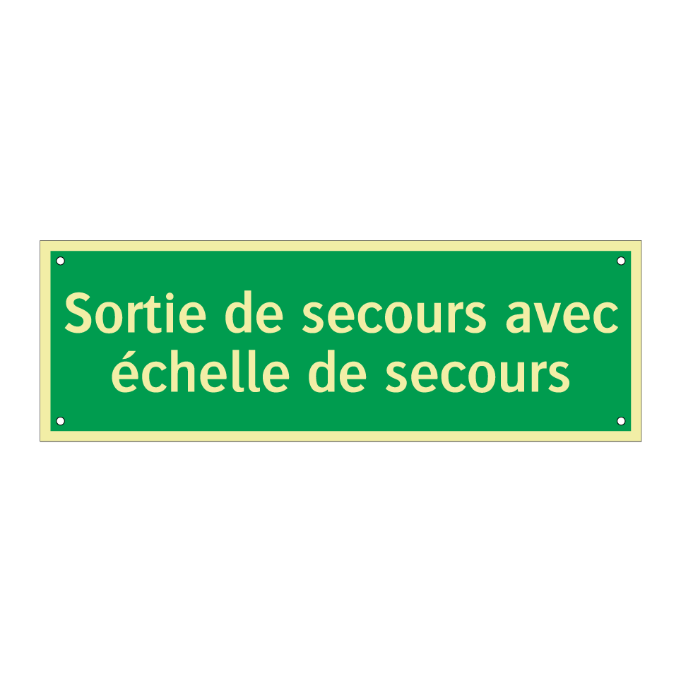 Panneau de secours avec le texte Sortie de secours avec échelle de secours