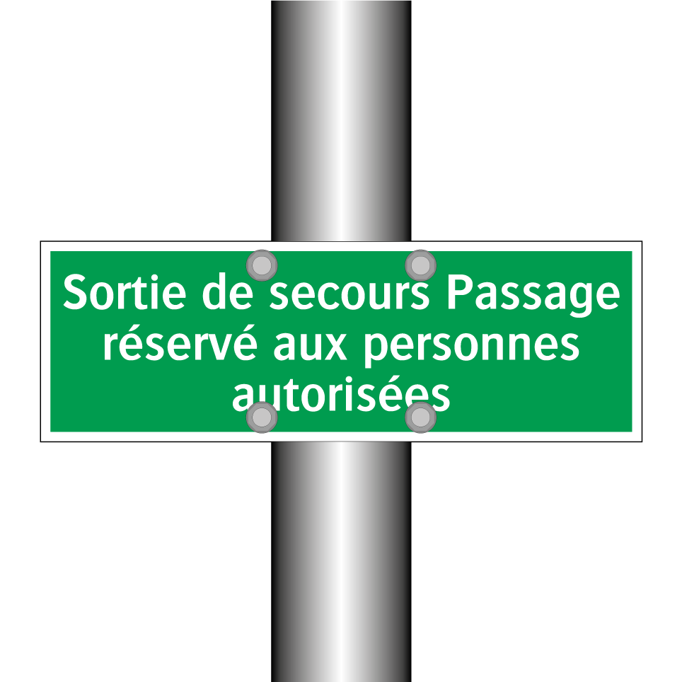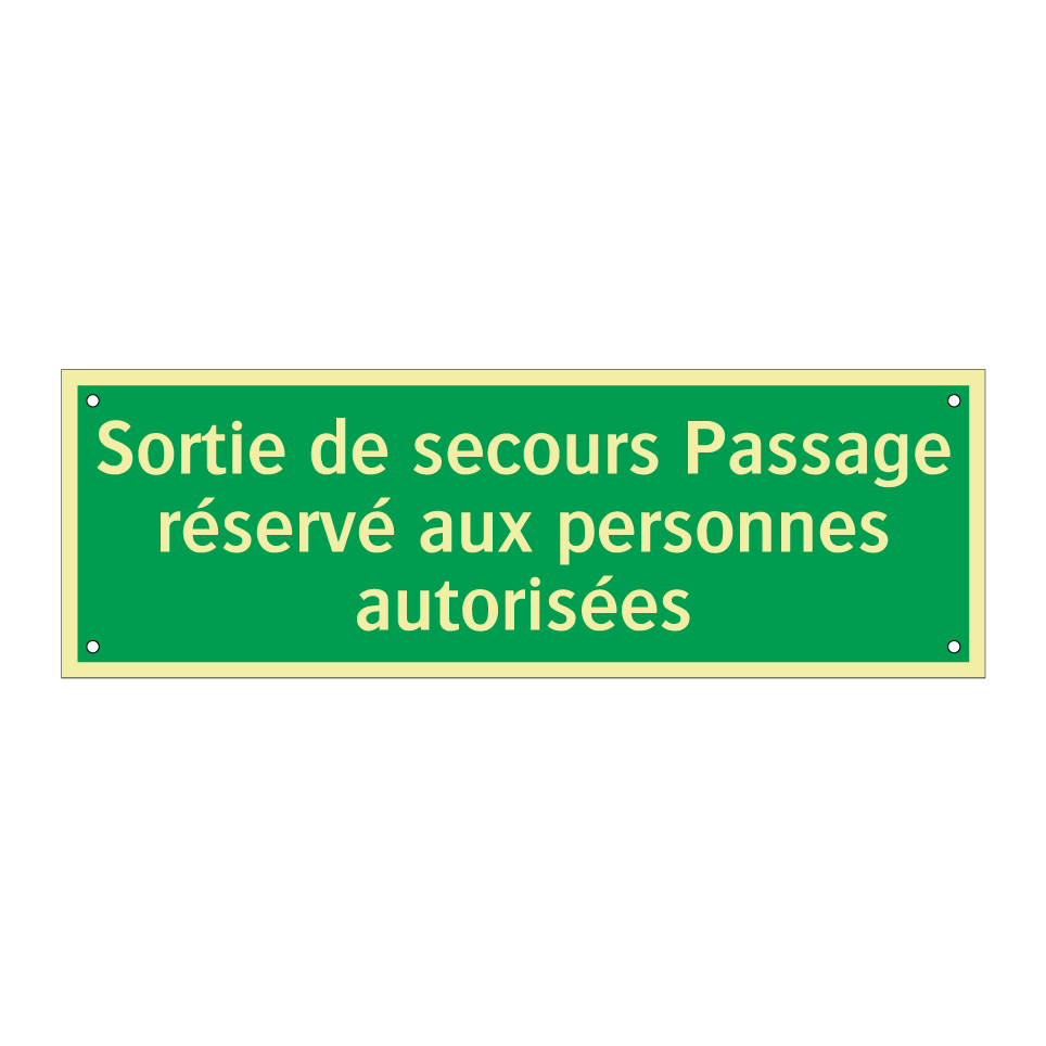 Panneau de secours avec le texte Sortie de secours Passage réservé aux personnes autorisées