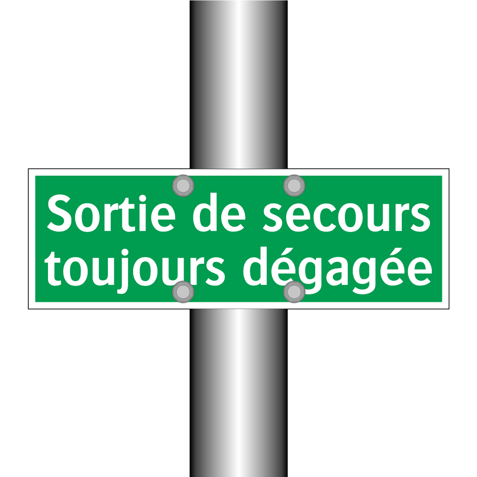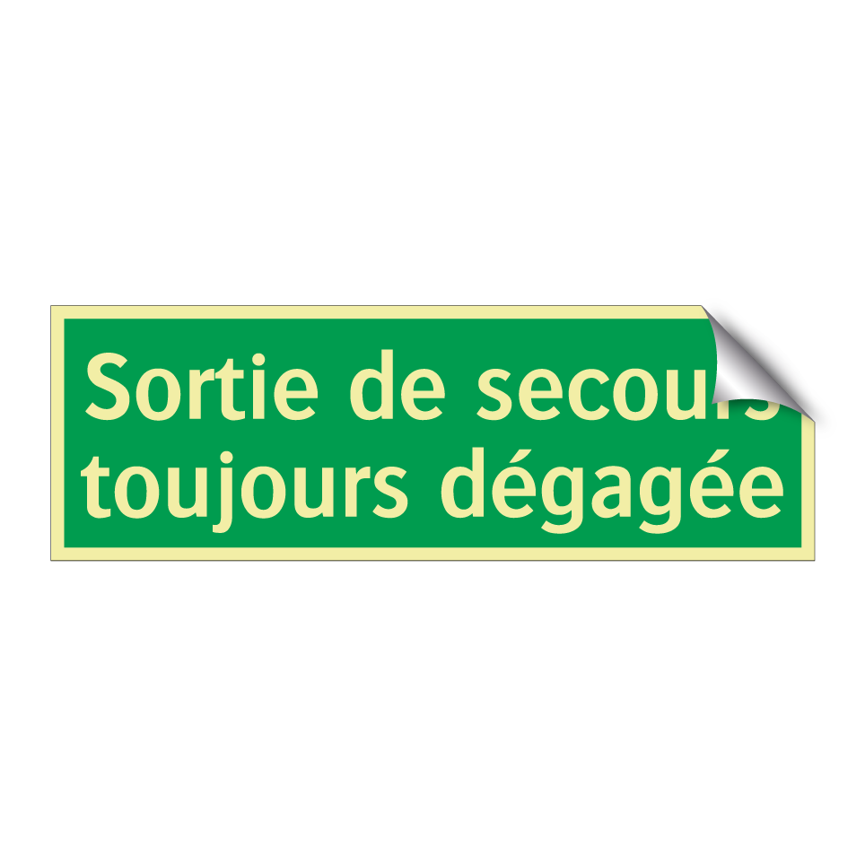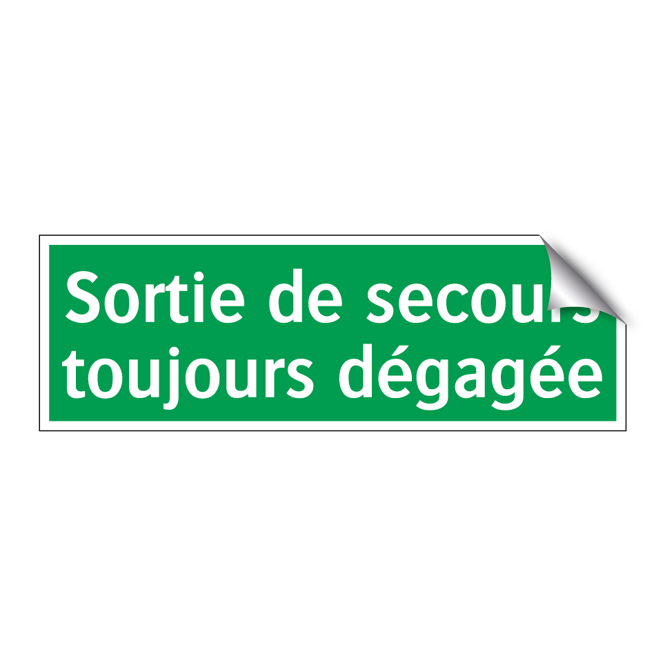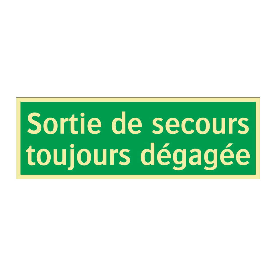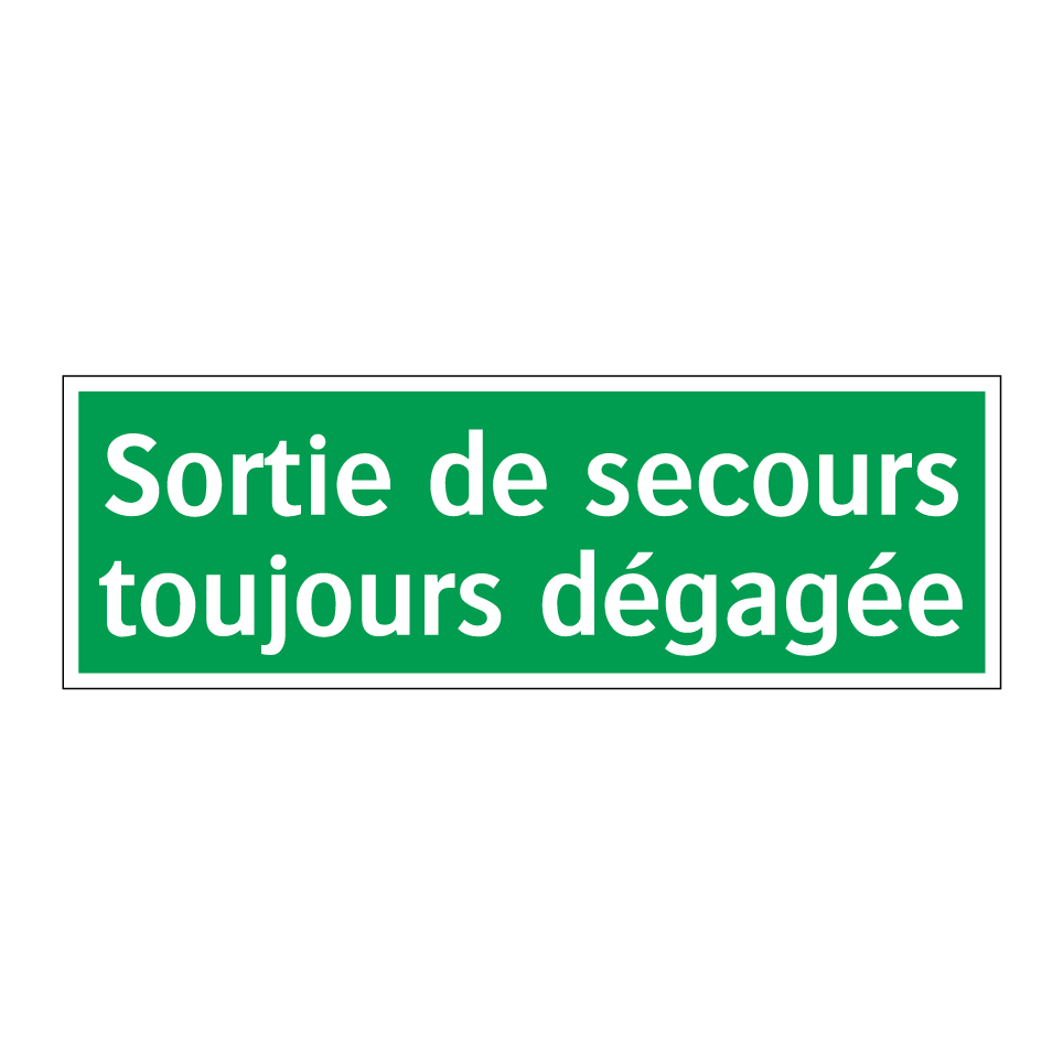 Panneau de secours avec le texte Sortie de secours toujours dégagée