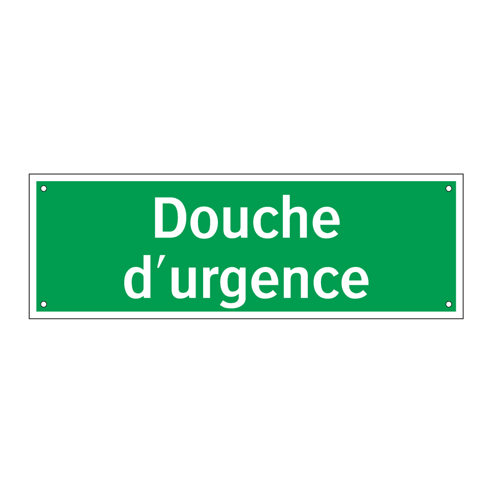 Cette enseigne de sécurité est essentielle pour indiquer l'emplacement d'une douche d'urgence, indispensable dans les environnements industriels, laboratoires ou ateliers où des substances dangereuses peuvent être manipulées. Elle assure une réponse rapide en cas d'accident chimique ou de brûlure, garantissant ainsi la sécurité des employés. Grâce à sa couleur verte et son texte blanc, elle est facilement repérable et doit être placée à proximité immédiate des zones à risque pour une visibilité optimale. Cette signalisation contribue à un environnement de travail sécurisé et conforme aux normes de sécurité.