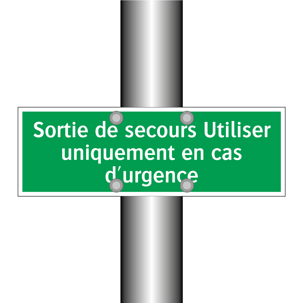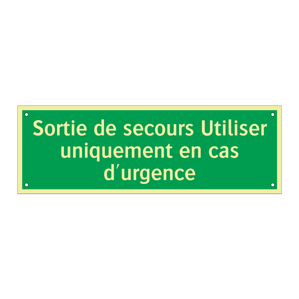 Panneau de secours avec le texte Sortie de secours Utiliser uniquement en cas d'urgence