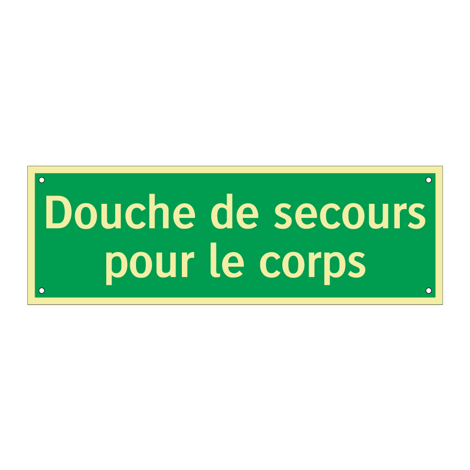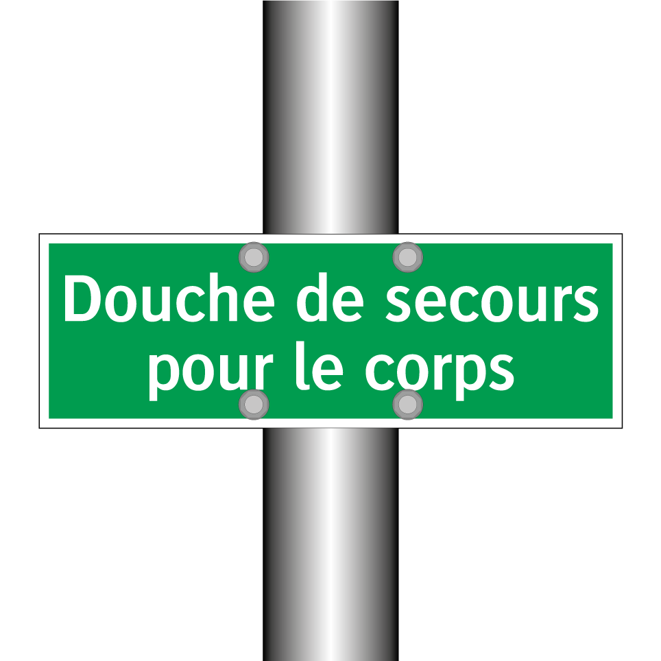 Cette enseigne de sécurité, avec son fond vert et son texte blanc, est essentielle pour indiquer l'emplacement d'une douche de secours corporelle. Elle est idéale pour les environnements industriels, les laboratoires ou tout autre lieu où des substances dangereuses peuvent être manipulées. Placée à proximité des zones à risque, elle assure une visibilité immédiate en cas d'urgence, permettant une intervention rapide pour minimiser les blessures. Son design clair et universel garantit qu'elle est facilement compréhensible, même pour ceux qui ne parlent pas couramment le français.