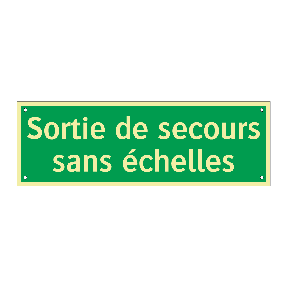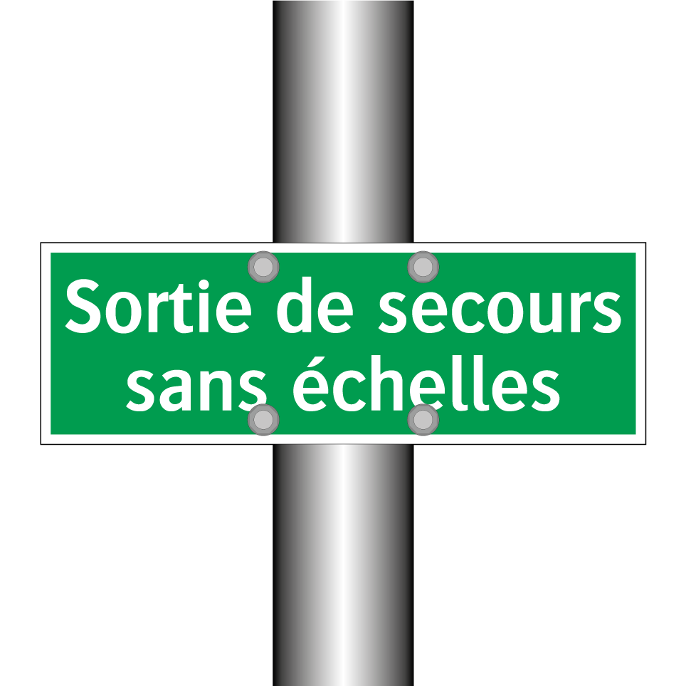 Panneau de secours avec le texte Sortie de secours sans échelles