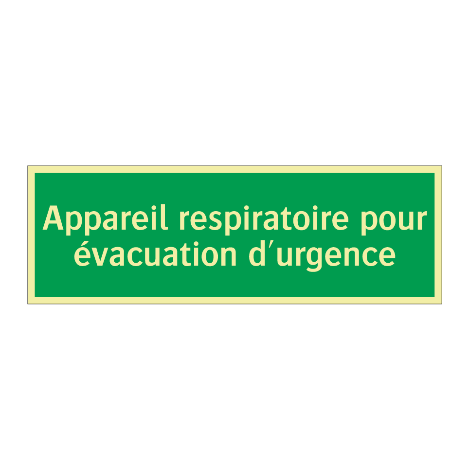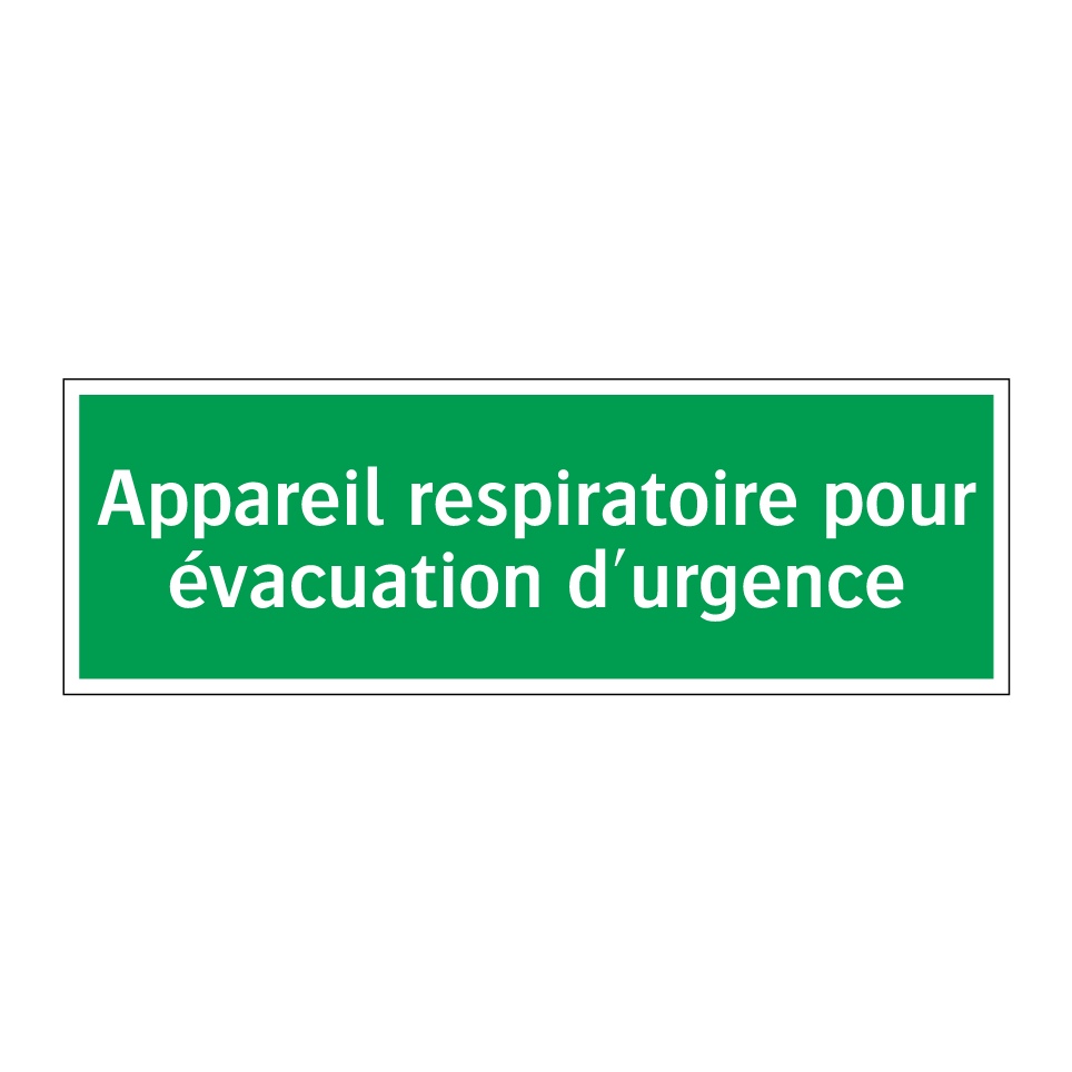 Panneau de secours avec le texte Appareil respiratoire pour évacuation d'urgence