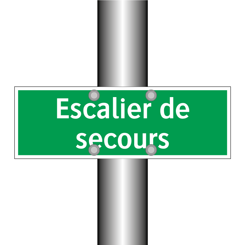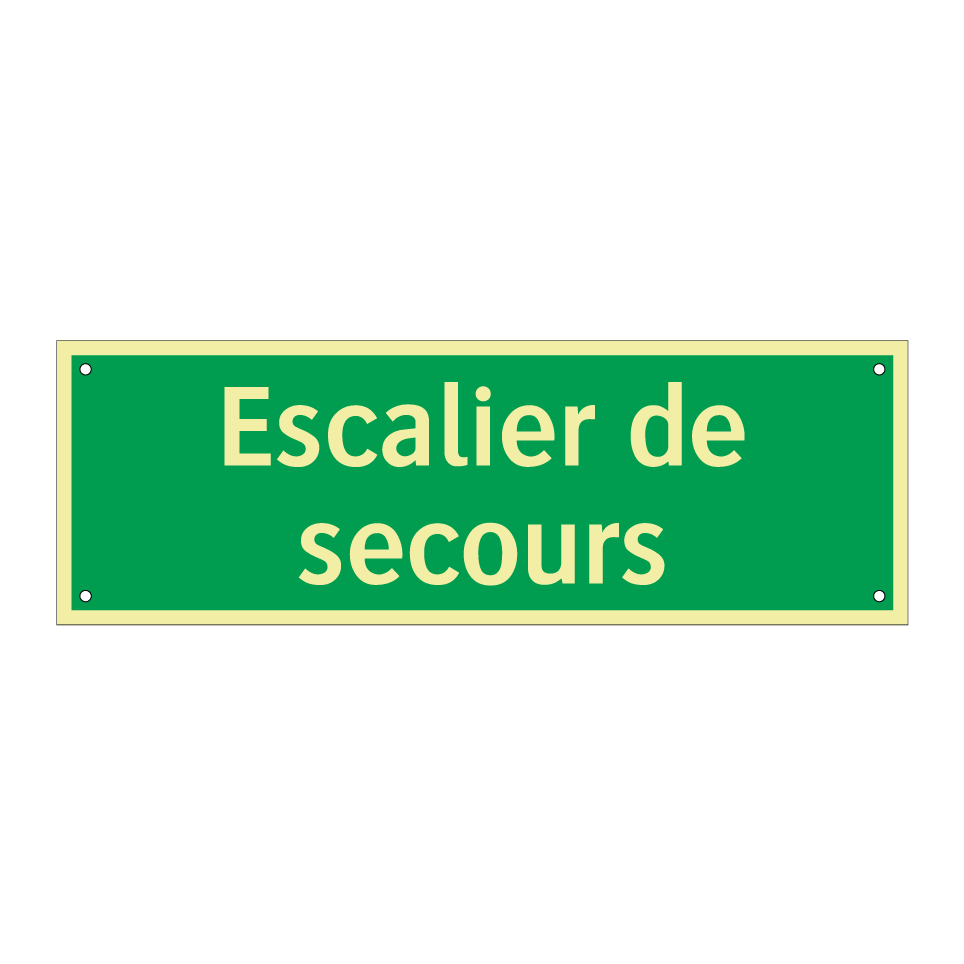 Cette enseigne de secours, avec son fond vert et son texte blanc, est idéale pour indiquer les issues de secours dans les bâtiments publics, les bureaux ou les complexes résidentiels. Elle joue un rôle crucial en guidant les occupants vers la sortie de secours en cas d'urgence. Grâce à sa visibilité élevée, elle peut être placée à proximité des escaliers de secours, des couloirs ou des sorties d'urgence. Son design clair et universel assure une compréhension rapide, même pour ceux qui ne parlent pas couramment la langue.