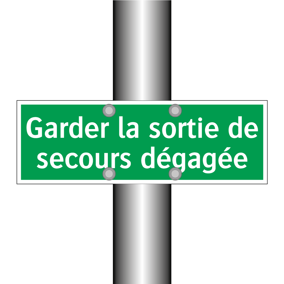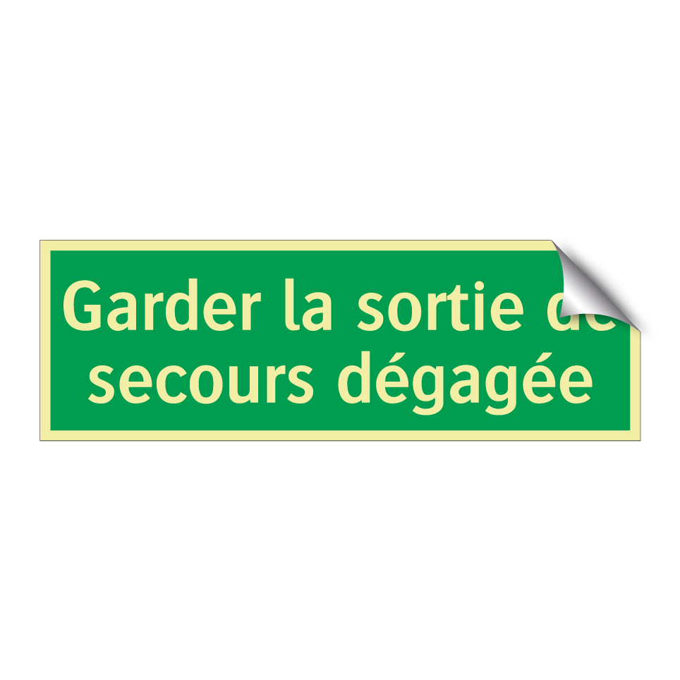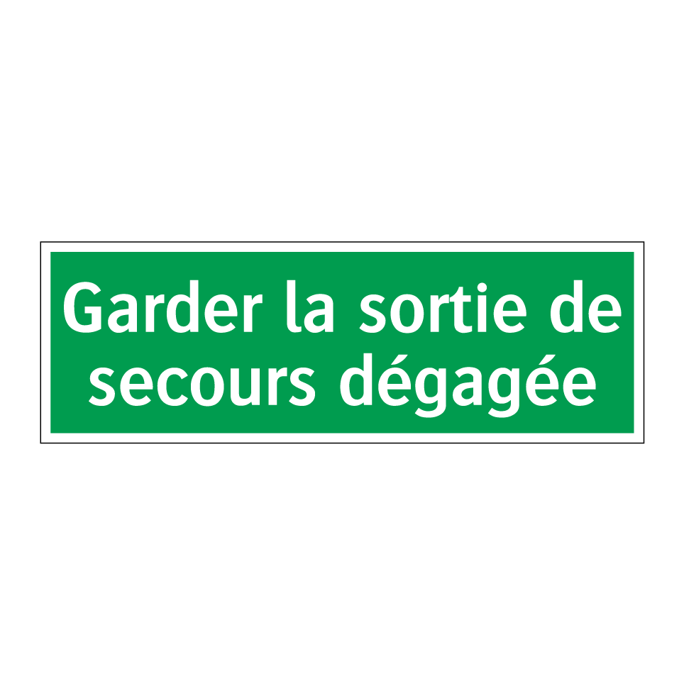 Panneau de secours avec le texte Garder la sortie de secours dégagée