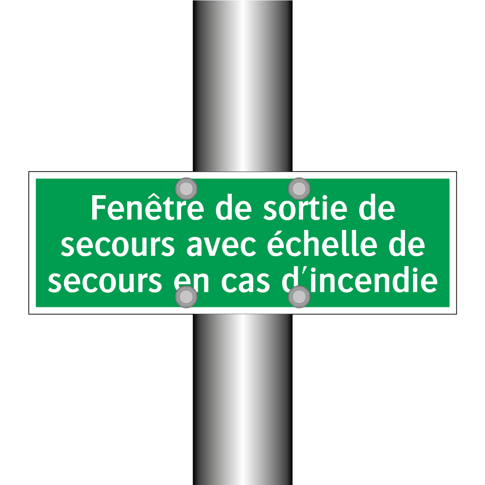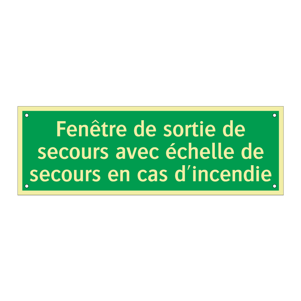 Panneau de secours avec le texte Fenêtre de sortie de secours avec échelle de secours en cas d'incendie