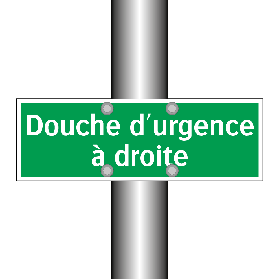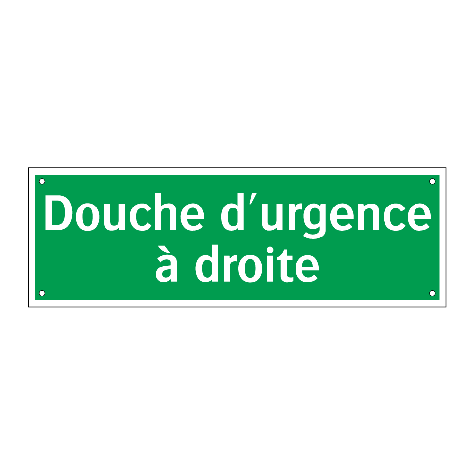 Cette signalisation de sécurité est essentielle pour indiquer l'emplacement d'une douche d'urgence, un équipement crucial dans les environnements industriels, laboratoires ou ateliers où des substances dangereuses peuvent être manipulées. Elle doit être placée de manière visible et accessible, idéalement à proximité des zones à risque, pour garantir une intervention rapide en cas d'accident. La couleur verte de fond, associée à la sécurité, et le texte blanc assurent une visibilité optimale, même à distance. Cette pancarte est indispensable pour respecter les normes de sécurité et protéger le personnel en cas d'incident.