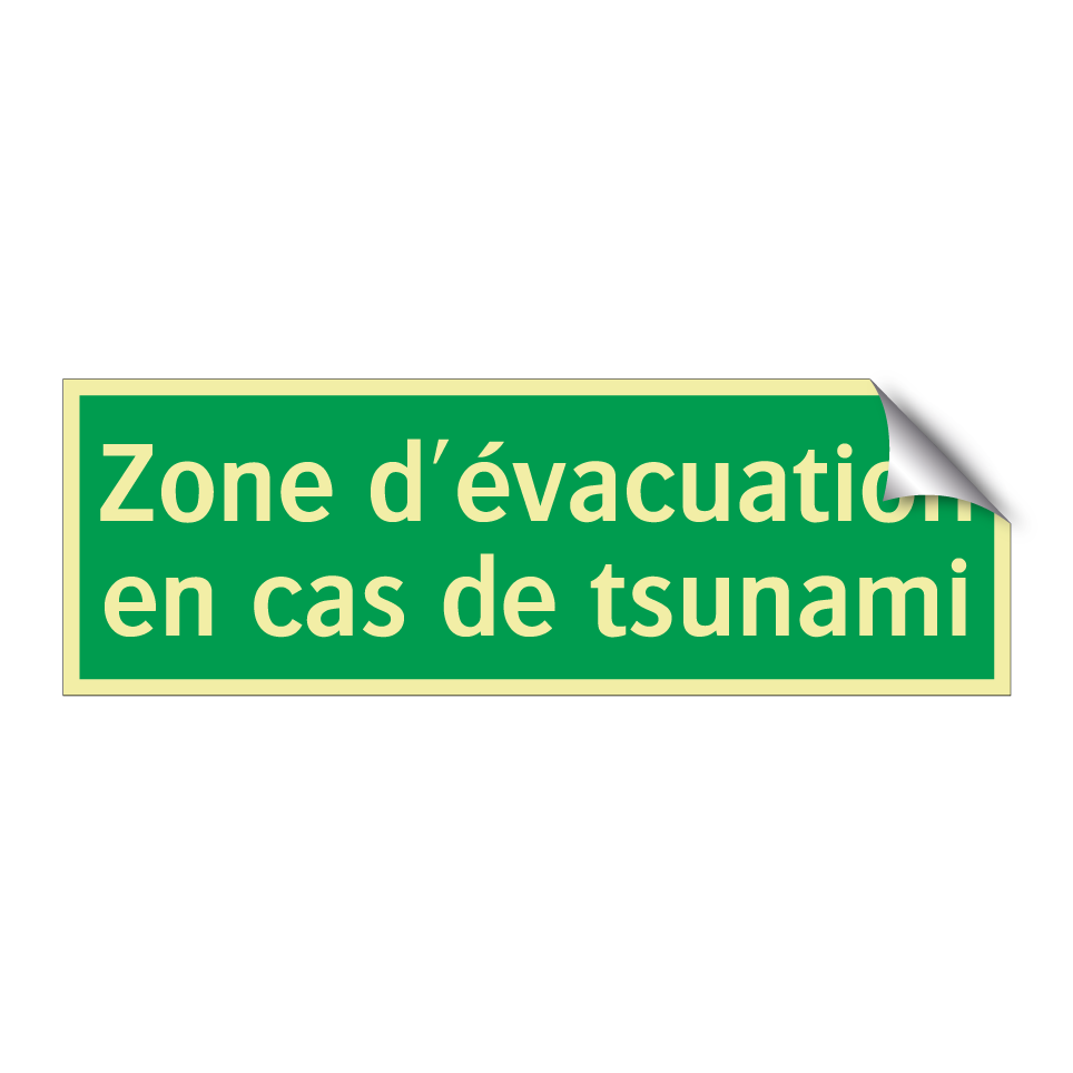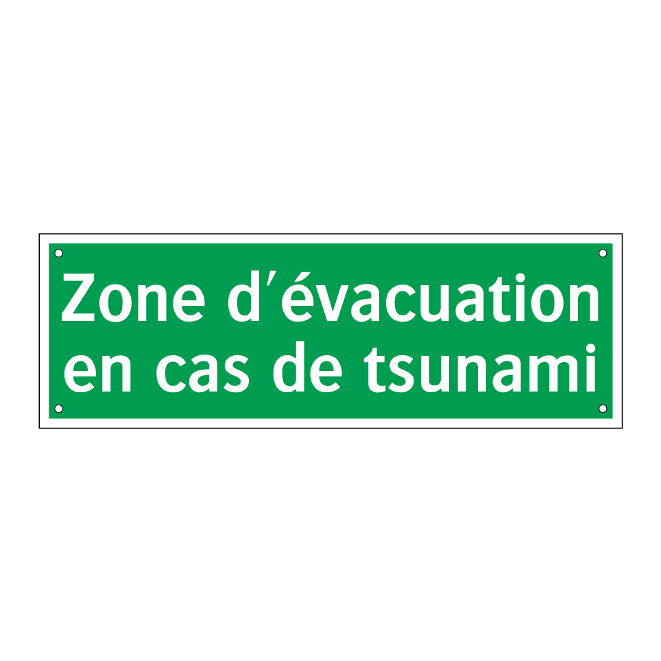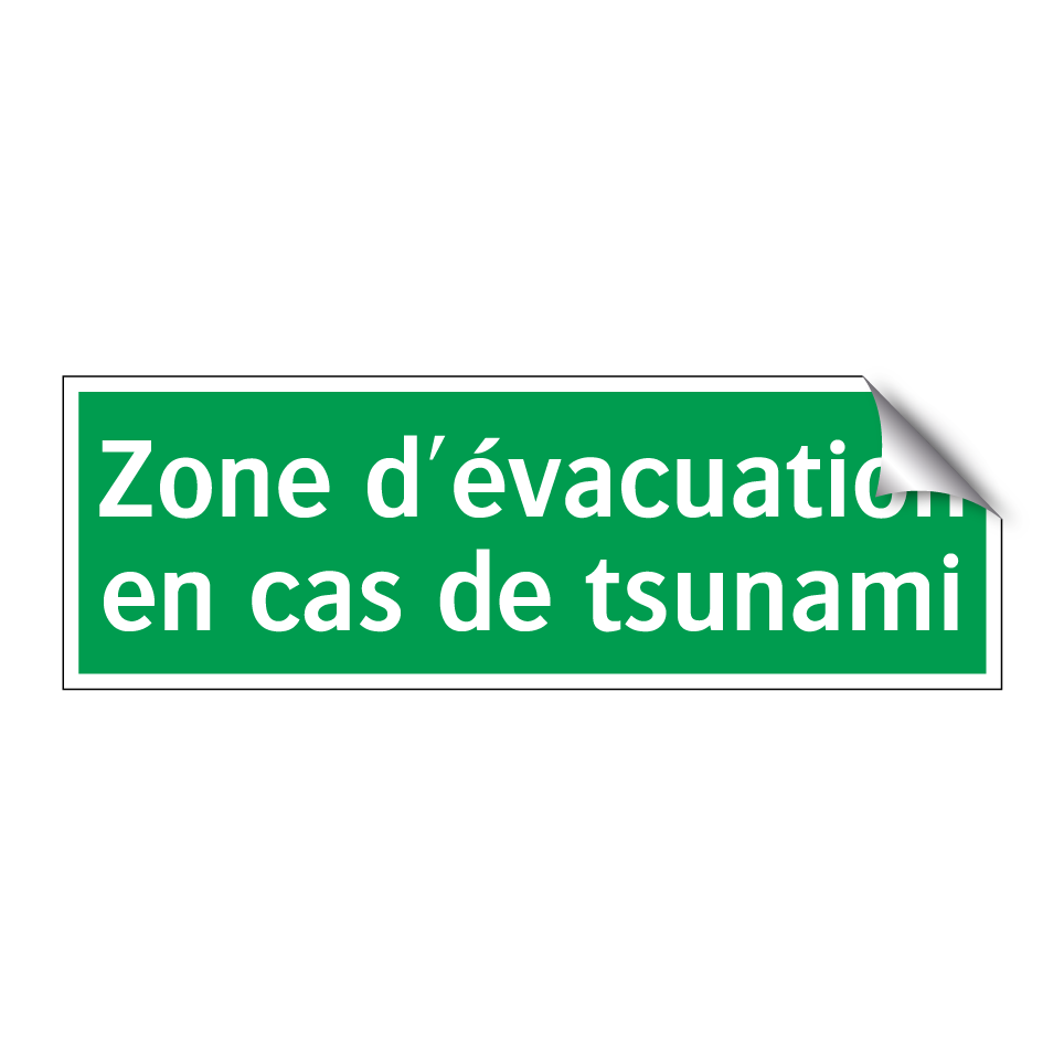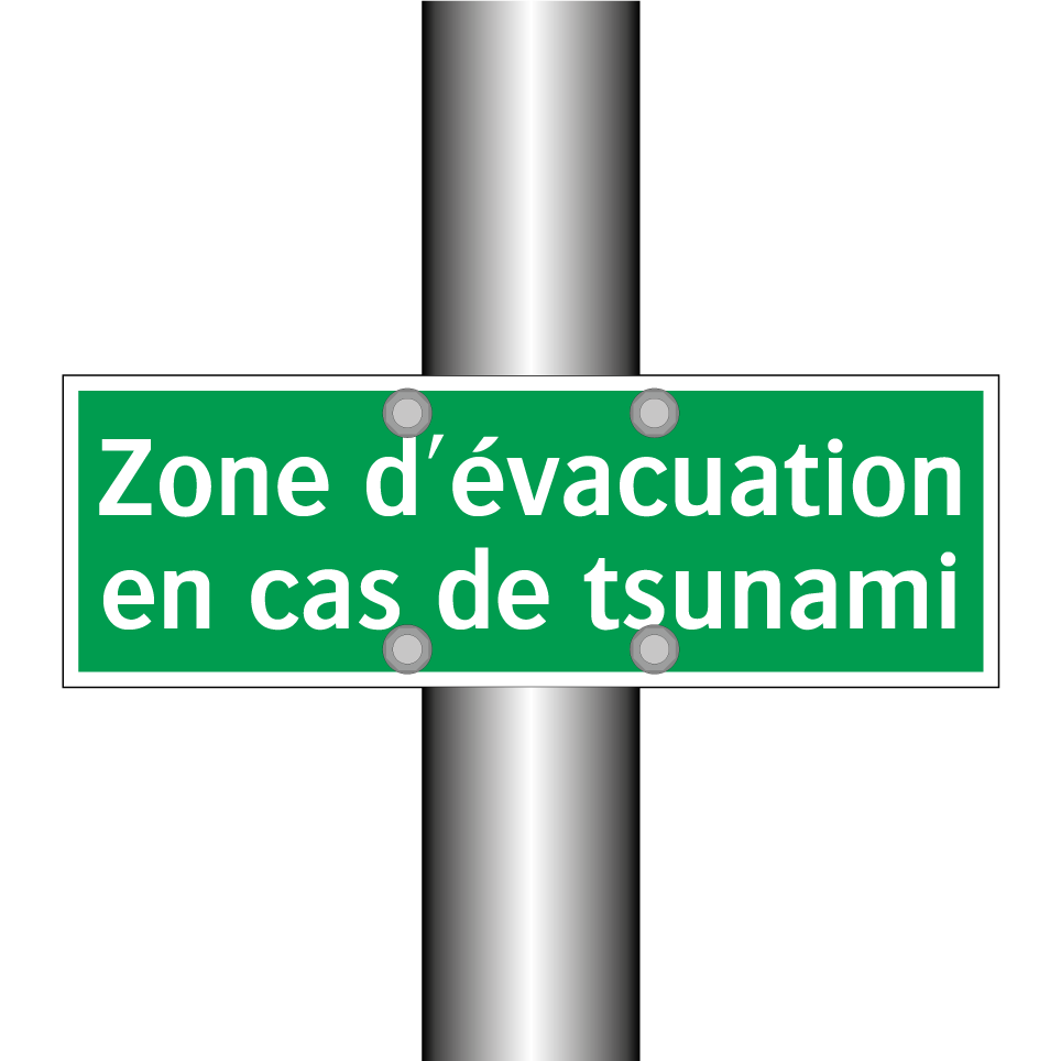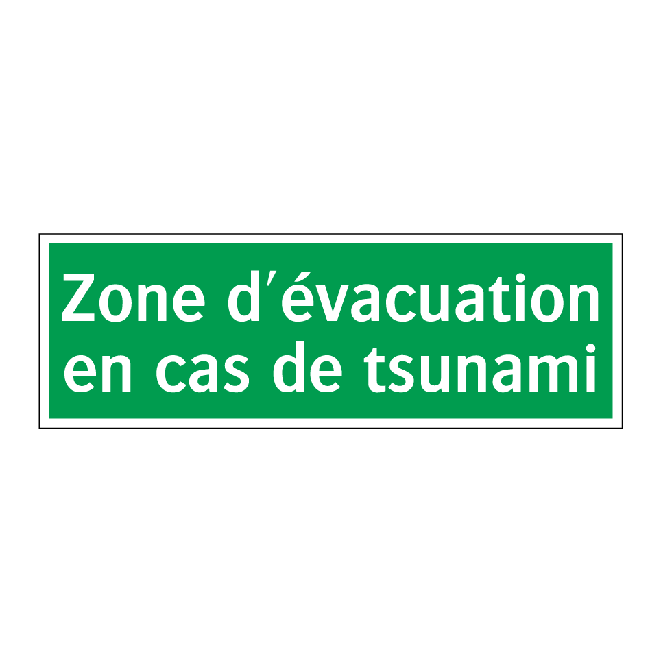Panneau de secours avec le texte Zone d'évacuation en cas de tsunami