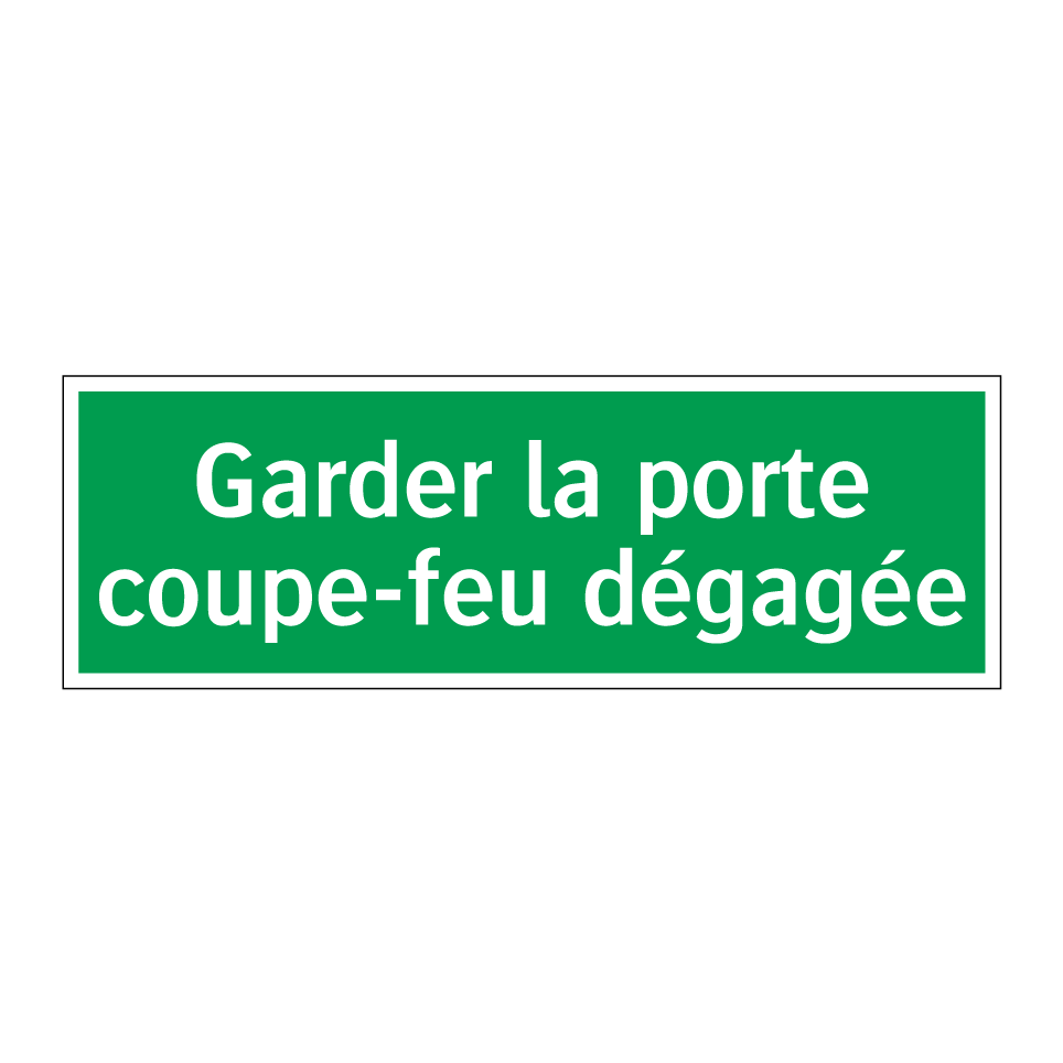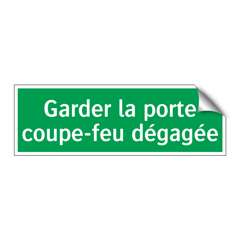 Panneau de secours avec le texte Garder la porte coupe-feu dégagée