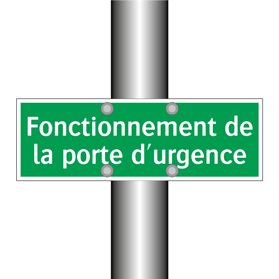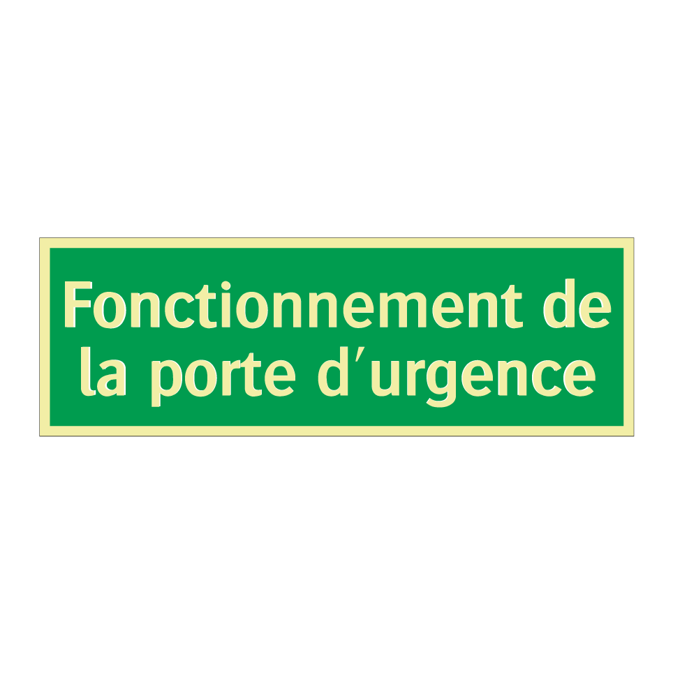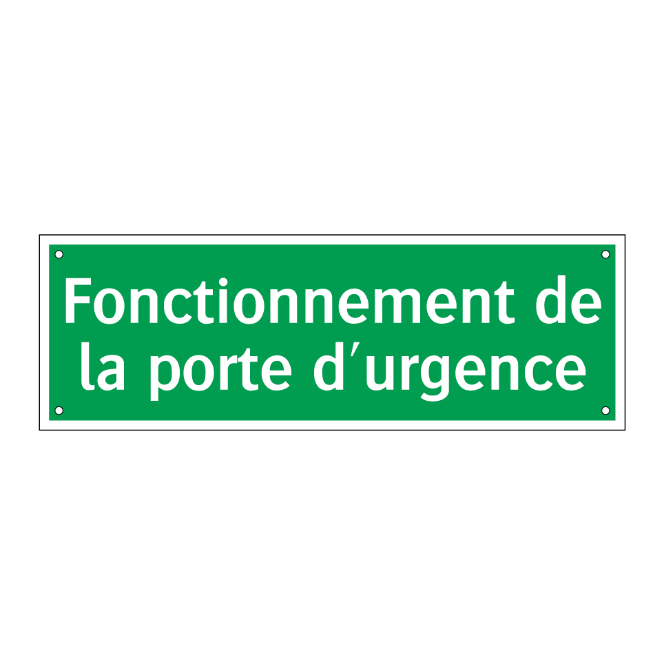 Panneau de secours avec le texte Fonctionnement de la porte d'urgence